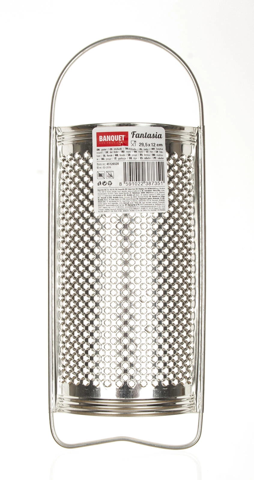 Det flade kartoffelrivejern Fantasia er en praktisk køkkenhjælper til hurtig og jævn rivning. Med målene 29,5 × 12 cm tilbyder det en behagelig arbejdsflade, og overfladen er af holdbart plademetal med en fortinnet finish for længere levetid og nemmere vedligeholdelse. Stabil konstruktion og nem rengøring gør det til et pålideligt redskab til daglig brug.