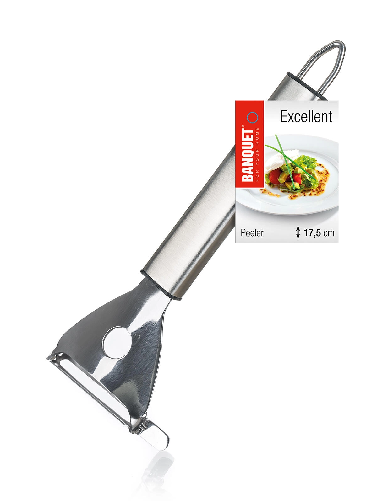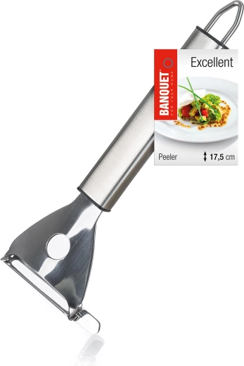 Skrælleren med tværgående klinge EXCELLENT er en pålidelig hjælper til den daglige madlavning. Takket være den skarpe klinge af rustfrit stål fjerner den nemt skrællen fra kartofler, gulerødder, æbler og anden frugt eller grønt. Den kompakte længde på 17,5 cm giver præcis håndtering og et behageligt greb.