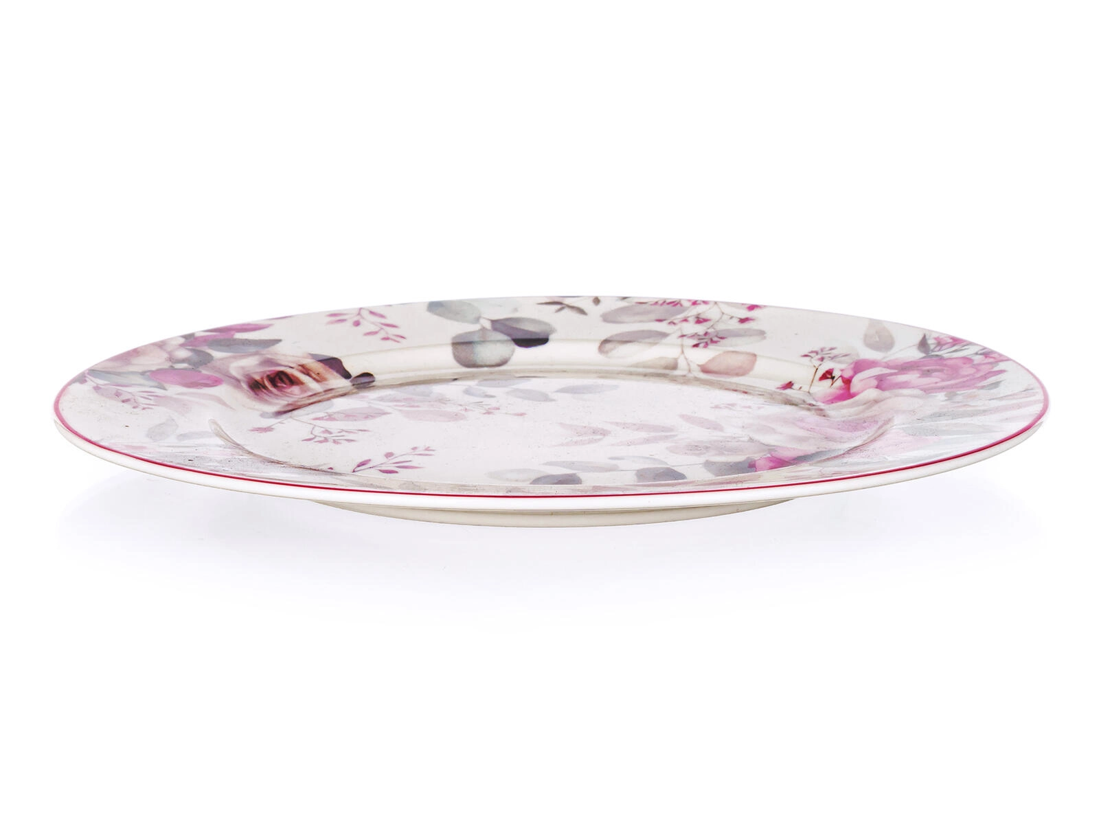 Pift dit bord op med den tidløse desserttallerken ROSE med et fint blomstermønster af roser i rosa og grå toner. Ideel til servering af desserter, forretter eller mindre portioner og passer perfekt til både moderne og landlig borddækning.