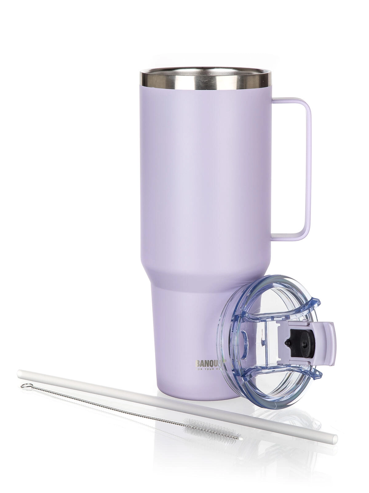 Det gennemsigtige låg af robust plast tilbyder to drikkemåder – via sugerør eller direkte fra tuden. Pakken indeholder et PP-sugerør og en rensebørste for let vedligeholdelse. Den robuste hank giver komfortabel bæring derhjemme, på kontoret og på farten. Et lukkeligt drikkehul hjælper mod spild, men låget er ikke 100% lækagesikkert – vi anbefaler at transportere i lodret position.
