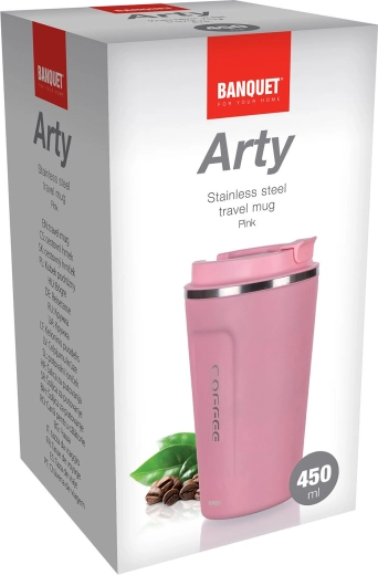 Nyd din yndlingsdrik på farten med termokruset ARTY 450 ml. Ydersiden er lavet af holdbart rustfrit stål 201, indersiden af rustfrit stål 304 for sikker kontakt med drikkevarer. Den dobbeltvæggede vakuumkonstruktion forbedrer varmeisoleringen og forlænger temperaturbevarelsen. Den pink finish giver din dag et frisk touch.