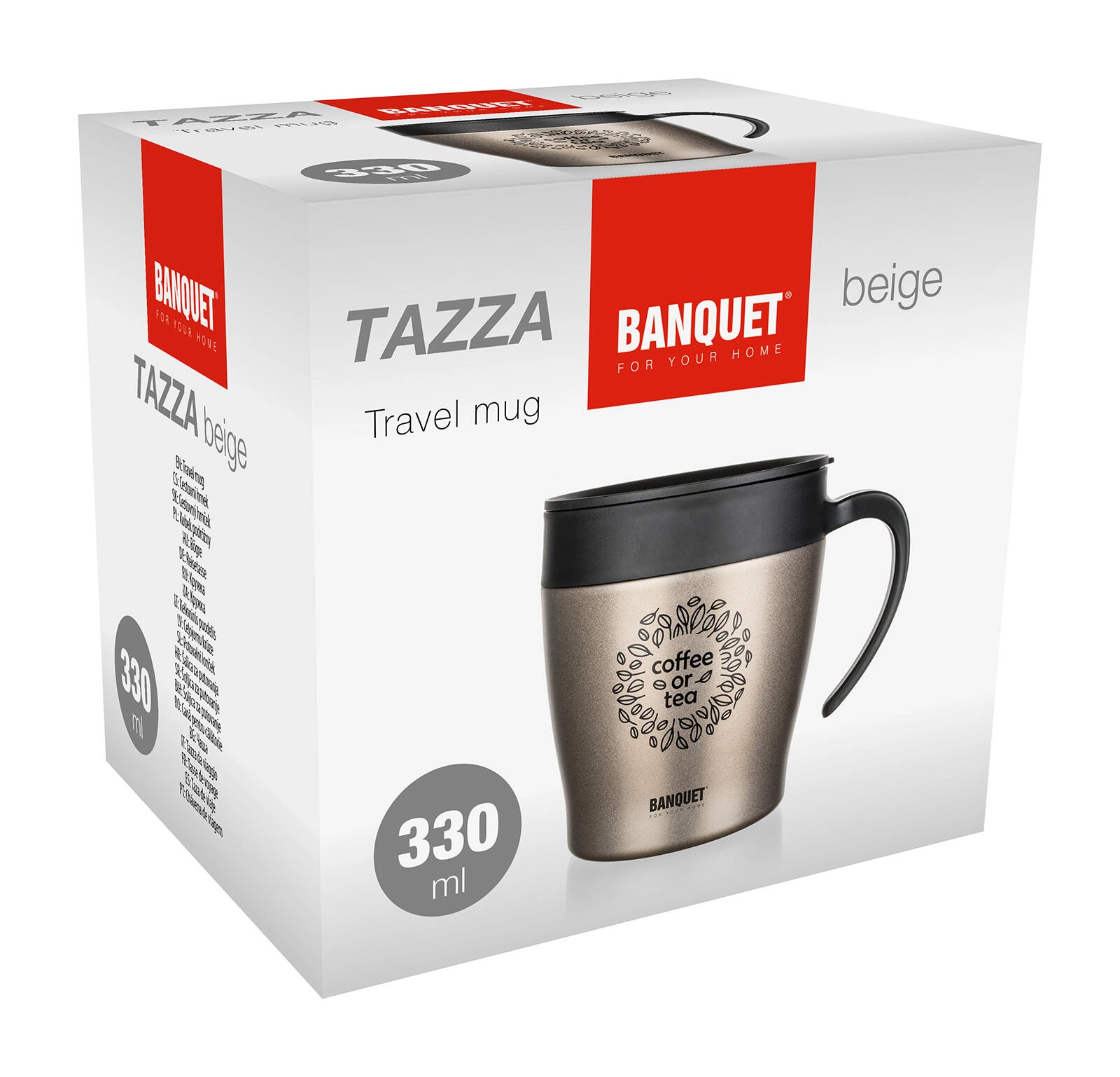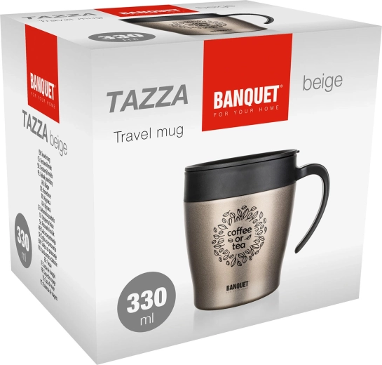 Den praktiske dobbeltvæggede termokrus BANQUET TAZZA med en kapacitet på 330 ml holder dine drikkevarer varme og kolde i længere tid. Kombinationen af rustfrit stål og kvalitetsplast med silikoneforsegling sikrer holdbarhed, behagelig drikning og pålidelig varmeisolering. Det stilfulde beige metalliske design passer perfekt til daglige ture i bil, på arbejde og på udflugter.