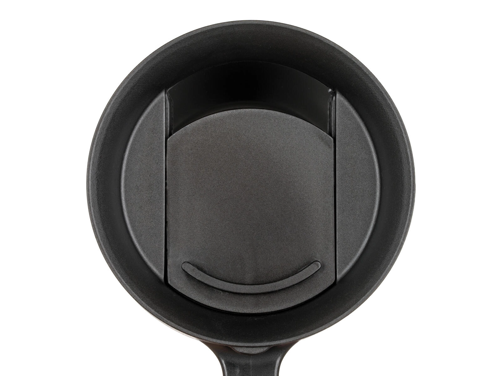 Det praktiske skydelåg minimerer spild under gang. For sikker brug opbevar kruset i lodret position.