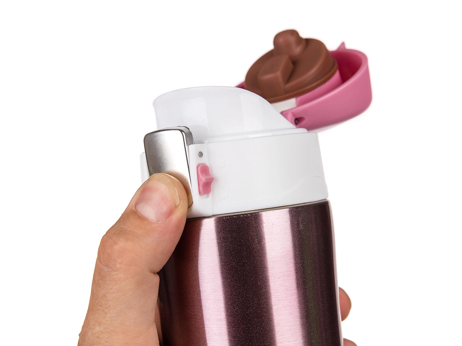 Flip-top låget med sikkerhedslås åbnes med ét tryk, så du kan drikke bekvemt med én hånd – ideel i bilen, på kontoret og på gåture. Den smarte tætning og låsefunktion minimerer risikoen for spild i taske eller rygsæk.