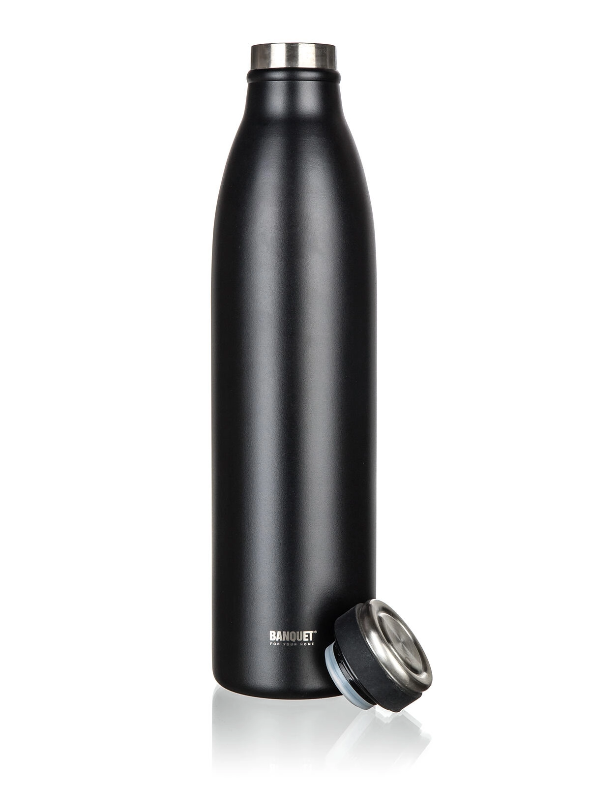 Den pålidelige rejsetermoflaske i mat sort kombinerer ydre i rustfrit stål 201 og indre i kvalitetsrustfrit stål 304 for ren smag og lang levetid. Takket være vakuumisoleringen holder kaffe, te eller kolde drikke deres ideelle temperatur i længere tid – derhjemme, på arbejdet og på farten.
