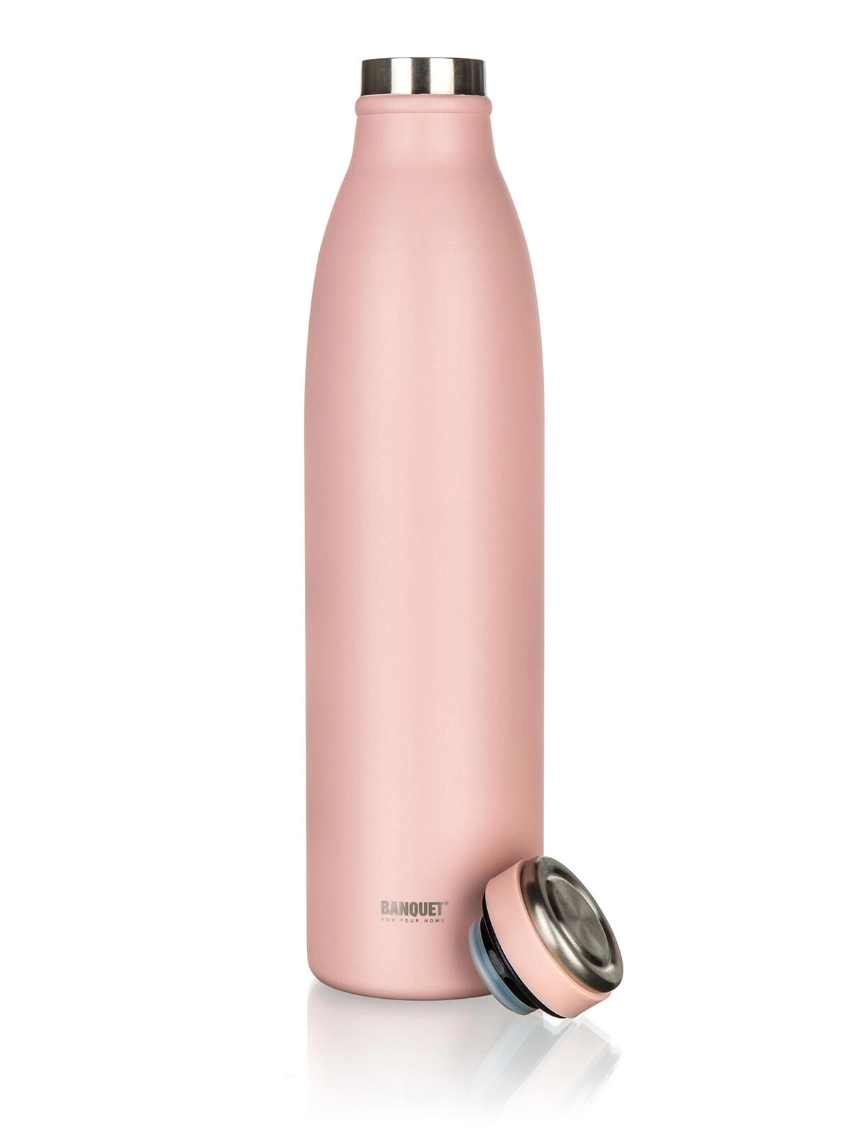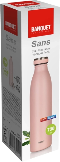 Den stilfulde SANS termoflaske i rustfrit stål med kapacitet 0,75 l i lakserosa holder dine drikke længere varme og kolde takket være den dobbeltvæggede vakuumkonstruktion. Det robuste kabinet i rustfrit stål og det tætlukkende skruelåg sikrer pålidelig brug på farten.