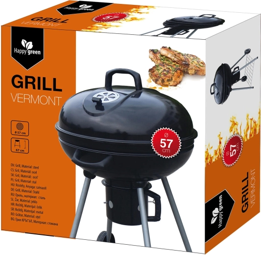 Nyd afslappet grillning med kedelgrillen Vermont med en diameter på 57 cm. Den tilbyder et emaljeret ildsted for lang holdbarhed, en forkromet grillrist for jævn stegning og en aftagelig askebeholder for nem rengøring. Takket være to hjul og robuste ben i rustfrit stål er grillen stabil og samtidig let at flytte.