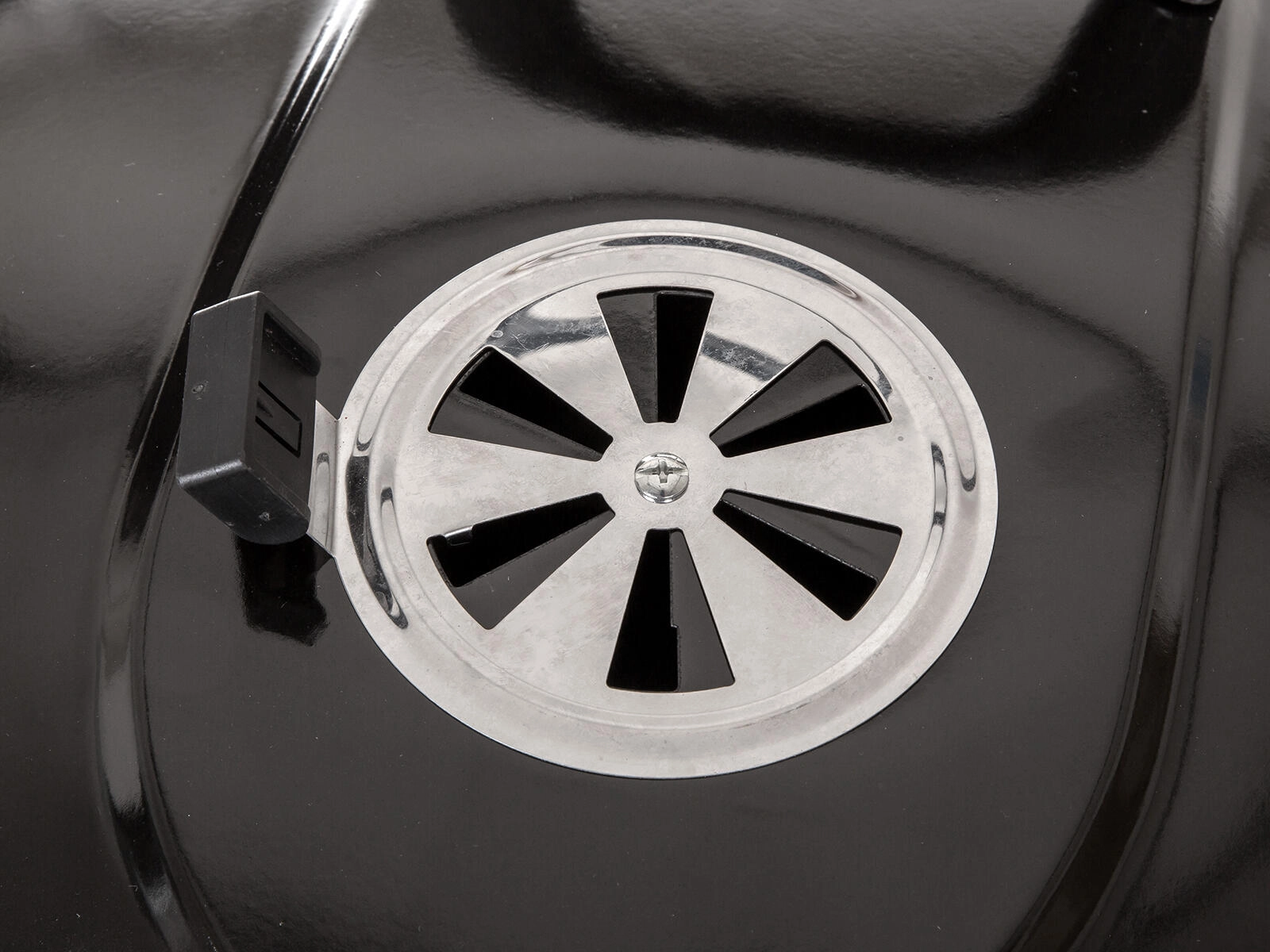 Styr temperaturen med luftspjældet, og løft låget sikkert takket være det varmebestandige håndtag.