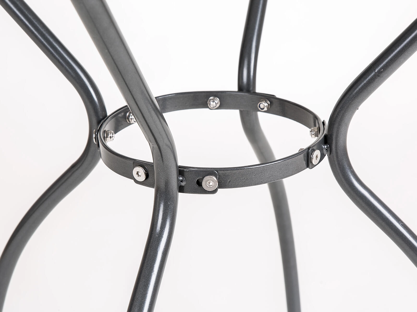 Den solide ramme med cirkulær afstivning mellem benene giver fremragende stabilitet og lang holdbarhed, selv ved hyppig udendørs brug.