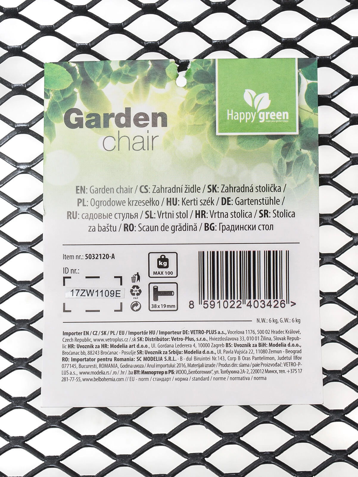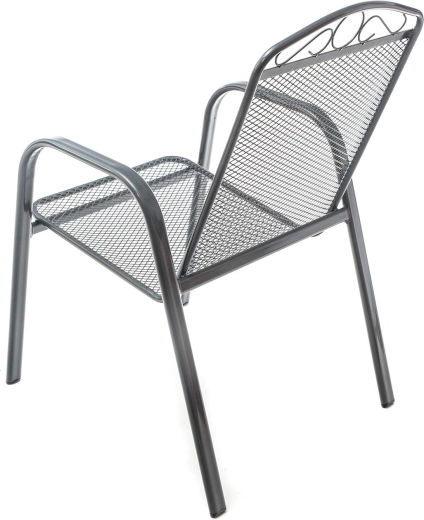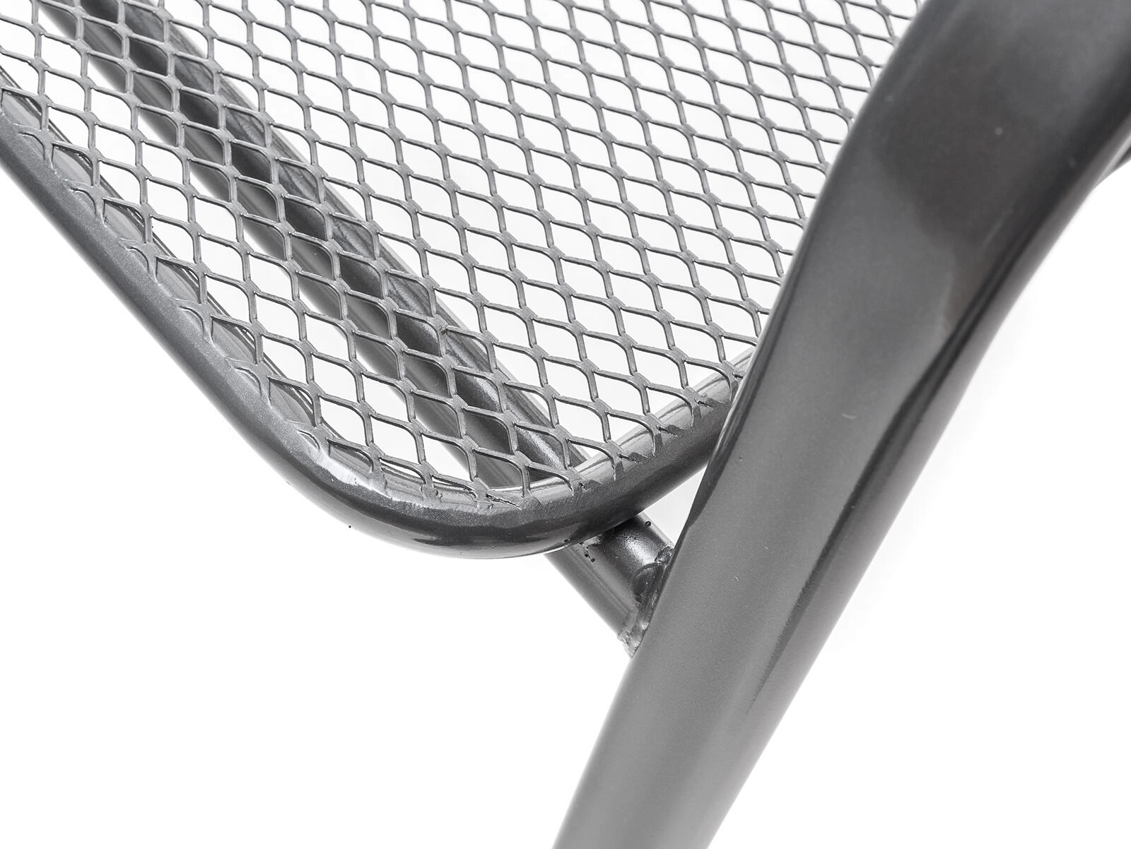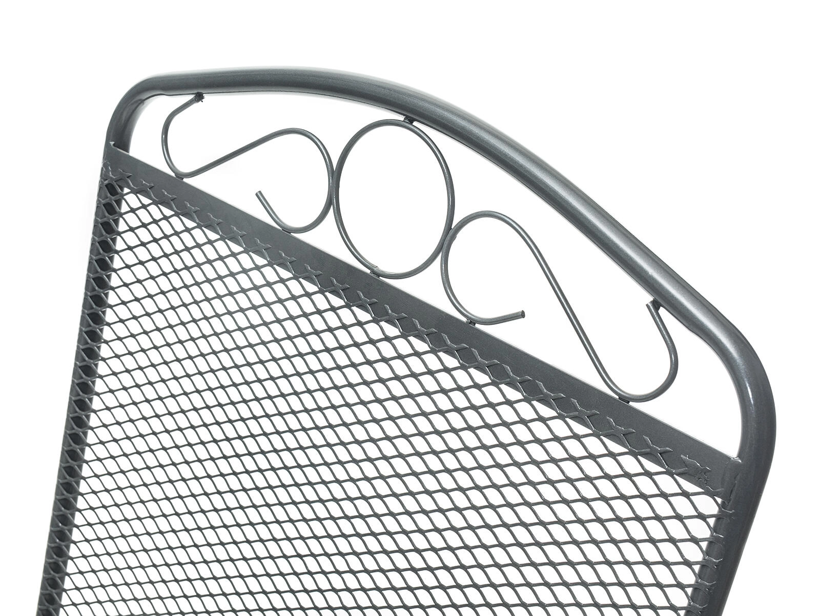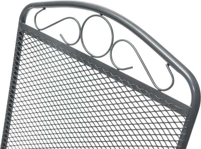 Denne havestol i stål kombinerer et klassisk udtryk med moderne holdbarhed. Den fine dekordetalje øverst på ryglænet giver stil, mens metalnet i sæde og ryg sikrer komfort, hurtig dræning og nem vedligeholdelse. Den robuste rammekonstruktion i stålrør giver stabilitet ved daglig udendørs brug.