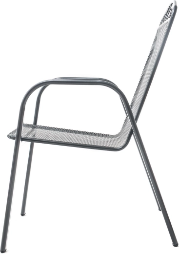 Takket være den avancerede overfladebeskyttelse – en grundlæggende E-coating for dybdegående korrosionsbeskyttelse og en afsluttende pulverlakeret finish – modstår stolen vejrpåvirkninger i mange år. Den praktiske stabelbarhed sparer plads på terrasse, altan og i opbevaring.