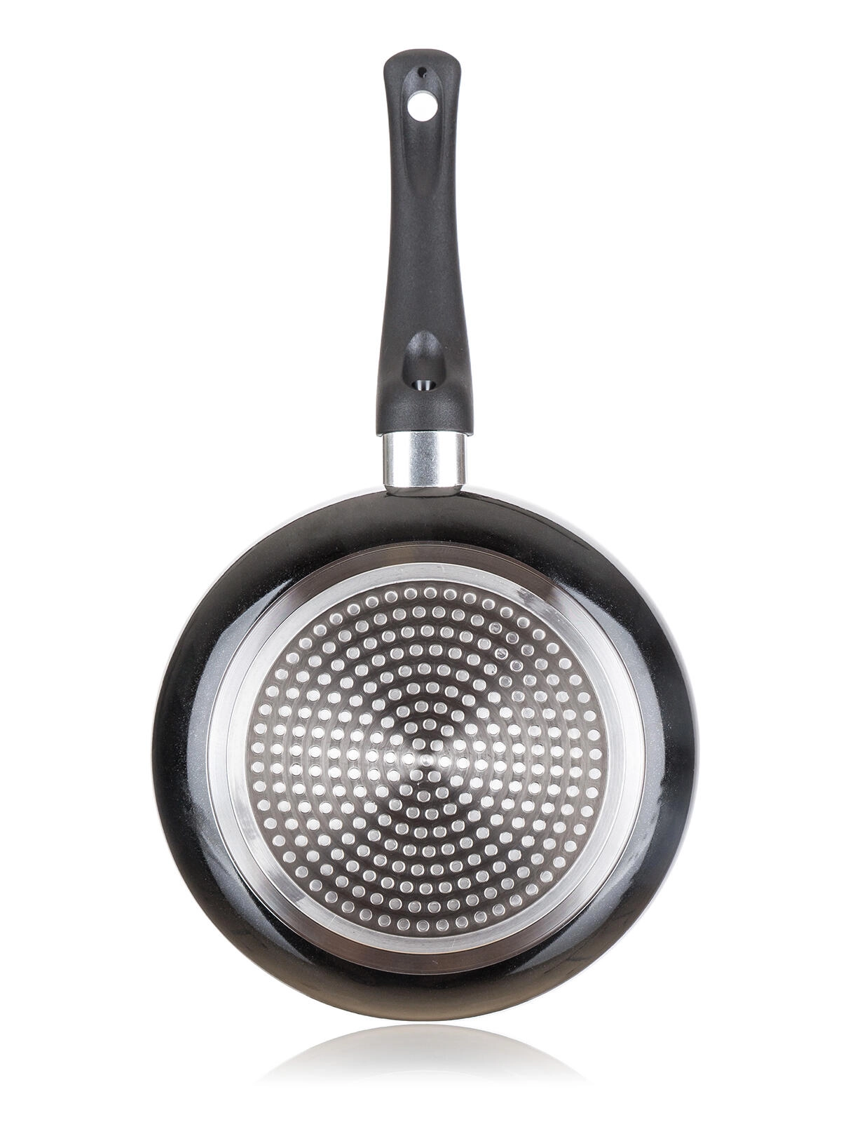 Den flade bund med induktionsmønster fordeler varmen jævnt og muliggør brug på gas-, el-, glaskeramiske og induktionsplader.