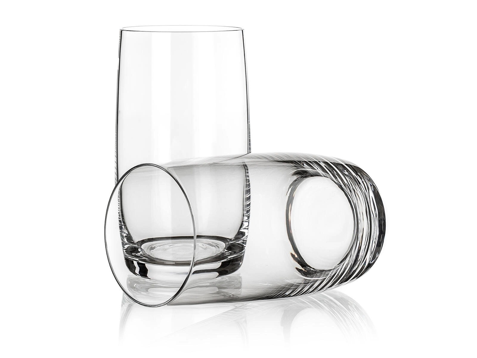 Glatte, lige sider og krystalklar gennemsigtighed får vand, juicer og cocktails til at træde frem og passer til ethvert bord.