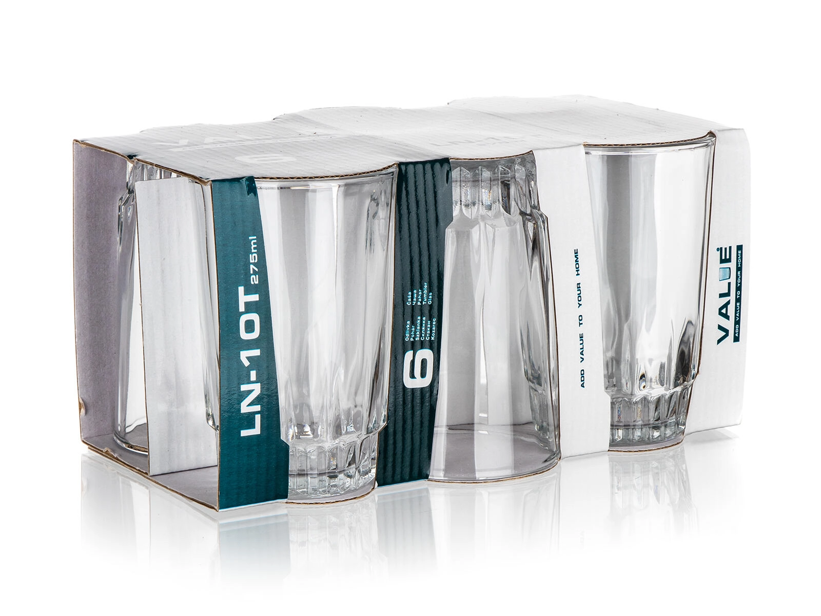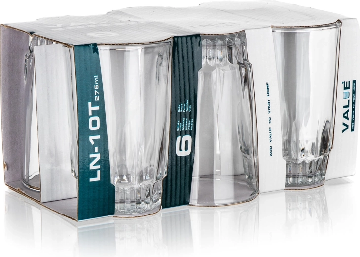 Sættet med seks alsidige VALUE-glas på 275 ml giver et tidløst udtryk til enhver borddækning. Den solide, teksturerede bund sikrer fremragende stabilitet og modstandsdygtighed mod at vælte, mens de glatte sider gør det nemt at rengøre og bruge dagligt.