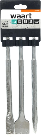 Universelt mejselsæt til SDS‑Plus fatning til borehamre, der gør arbejde som mejsling, nedbrydning, fræsning af riller og opbrydning af murværk, beton, fliser, klinker og sten lettere. Indeholder to fladmejsler 20/40 × 250 mm og én spidsmejsel 14 × 250 mm.