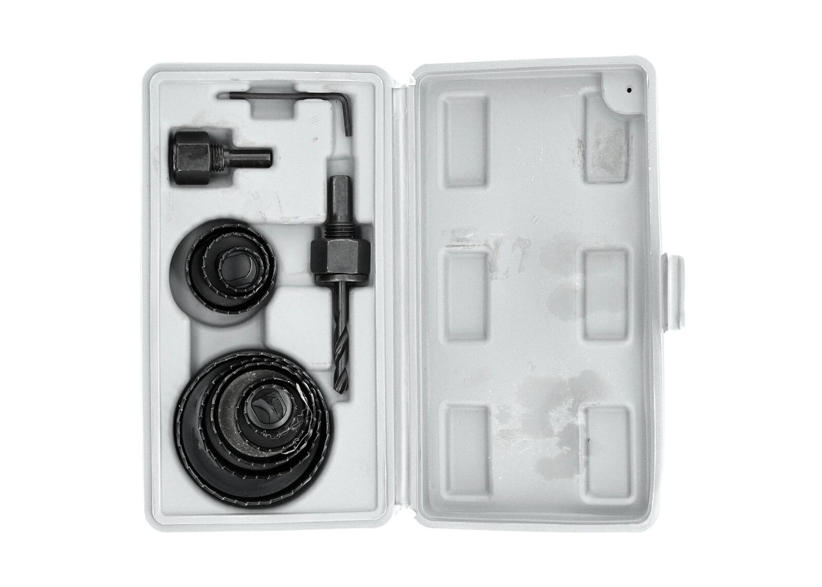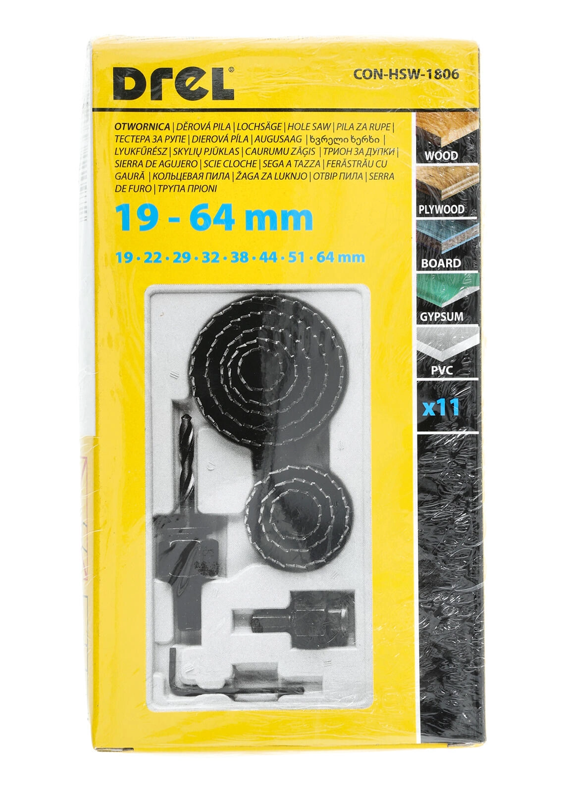 Dette 11-delte sæt af hulsave muliggør hurtig og ren boring af cirkulære huller i træ og gipsplader. Takket være det brede diameterområde på 19–64 mm løser du nemt installation af stikkontakter, kabelgennemføringer i borde og andre montageopgaver.