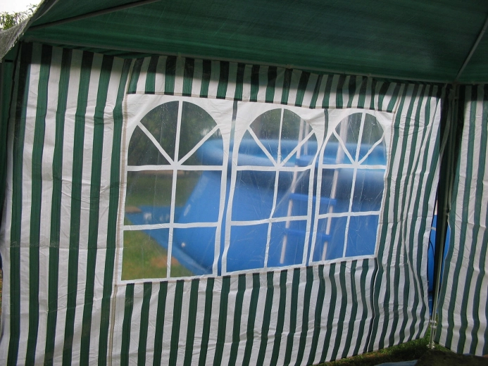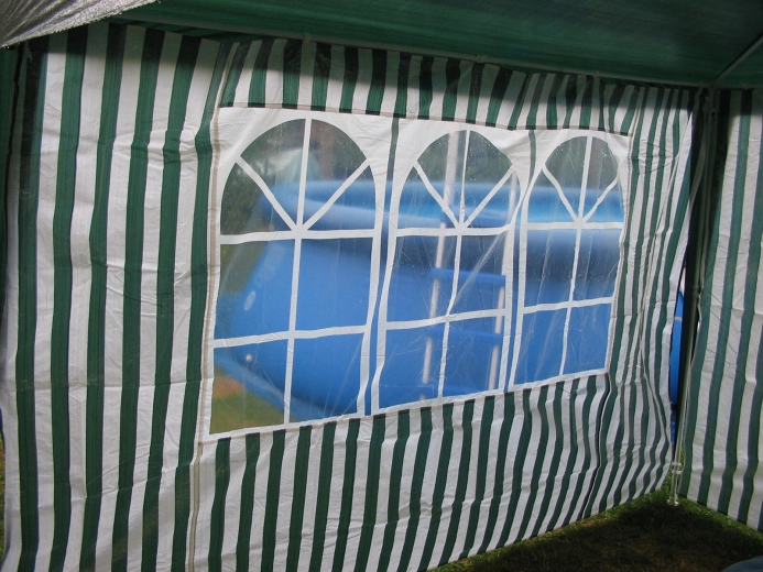 Sidevæg til pavillon 295 × 190 cm med vinduer – hvid‑grønne striber