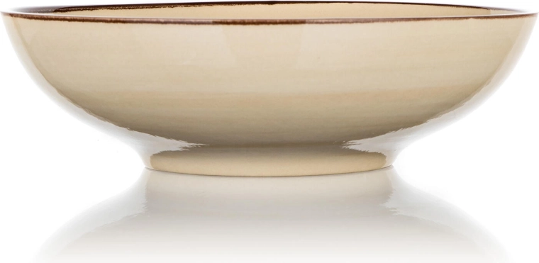Den cremede keramiske dybe tallerken Palas med en diameter på 18 cm forener funktionalitet og æstetik. Den neutrale tone og den diskrete markerede kant fremhæver de serverede retter og passer nemt ind i enhver køkkenstil. En slidstærk glasur understøtter daglig brug og enkel vedligeholdelse.