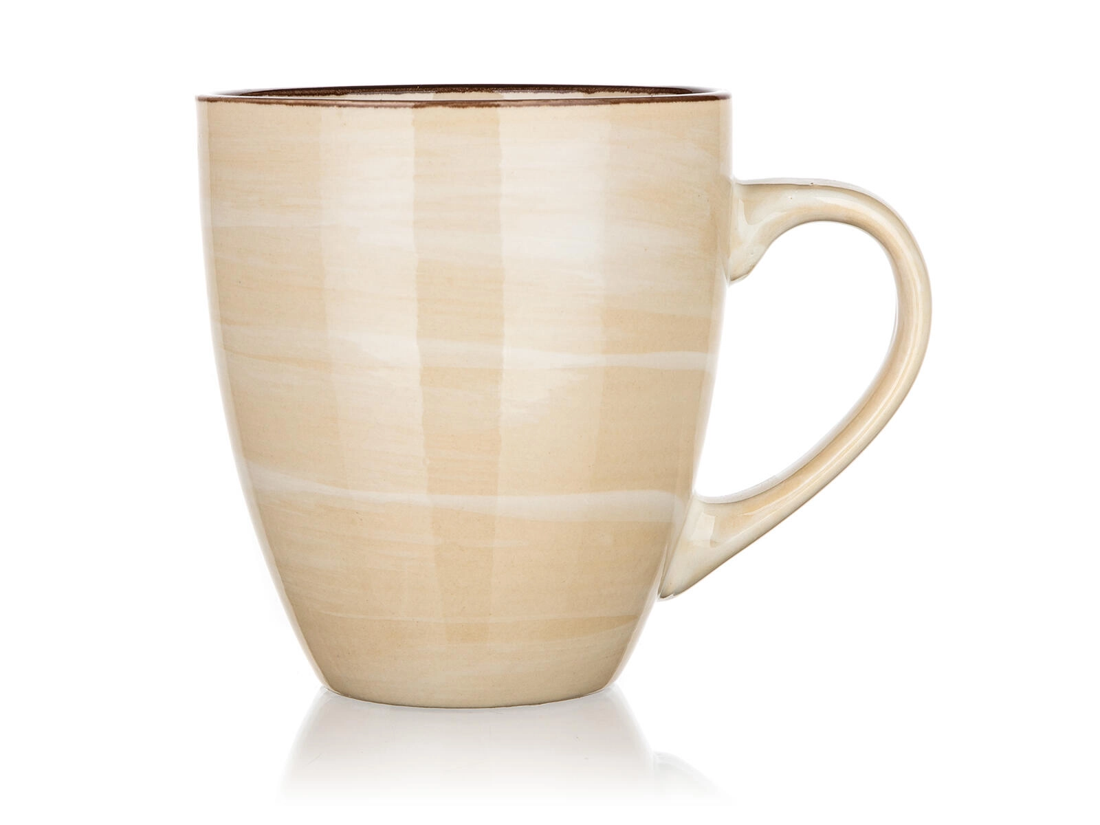 Stilfuldt cremefarvet krus med en kapacitet på 400 ml, ideelt til daglig kaffe eller te. Takket være keramik af høj kvalitet er det holdbart, har et behageligt håndtag, og du kan trygt sætte det i opvaskemaskine og mikrobølgeovn.