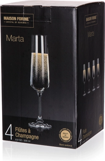 Nyd boblerne med stil. Champagneglassene Marta på 205 ml har en slank fløjteform, som hjælper med at bevare perlningen og fremhæver aromaen. Takket være kvalitetsglas fra slovakisk produktion og en hærdet kant tilbyder de lang levetid selv ved hyppig brug.