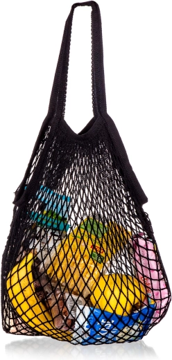 Den praktiske sorte netpose PRETTY UP er en ideel ledsager til hverdagsindkøb. Takket være det fleksible og åndbare net tilpasser den sig indholdet og forbliver let og nem at opbevare i håndtaske eller rygsæk. Det lange, forstærkede hank sikrer behagelig bæring på skulderen – også ved større indkøb.
