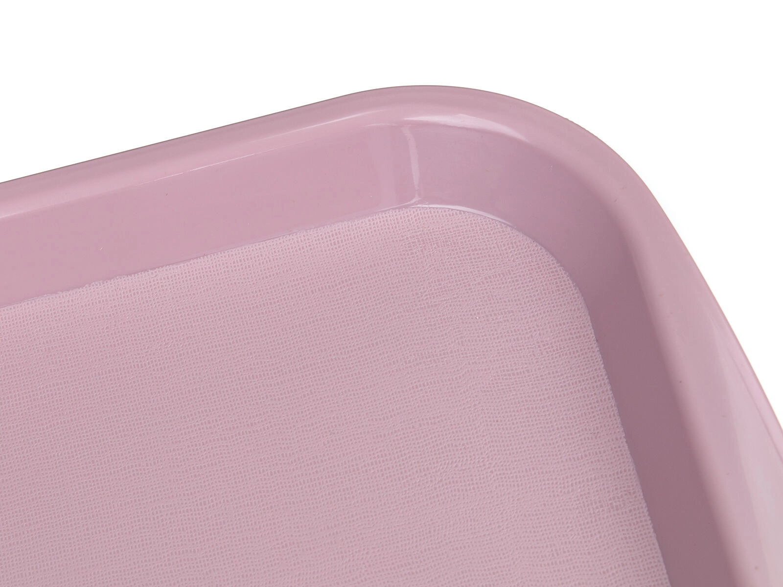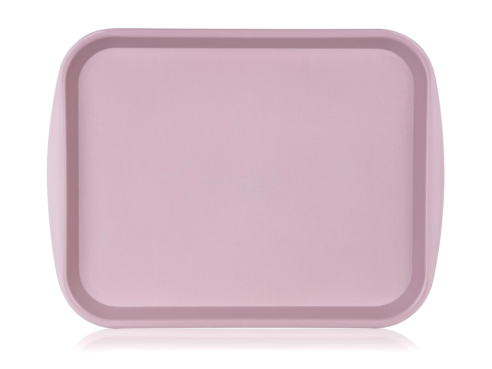 Den skridsikkert teksturerede overflade giver stabilitet til kopper, glas og tallerkener, mens de glatte, afrundede kanter gør rengøringen nem. Bakken er let at vedligeholde – det er nok at tørre af eller skylle.