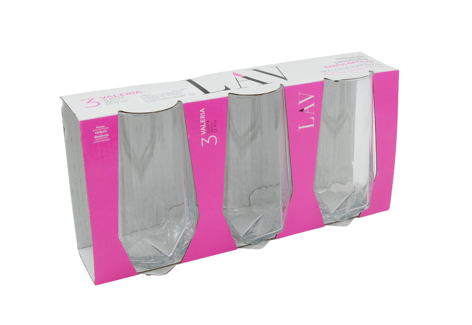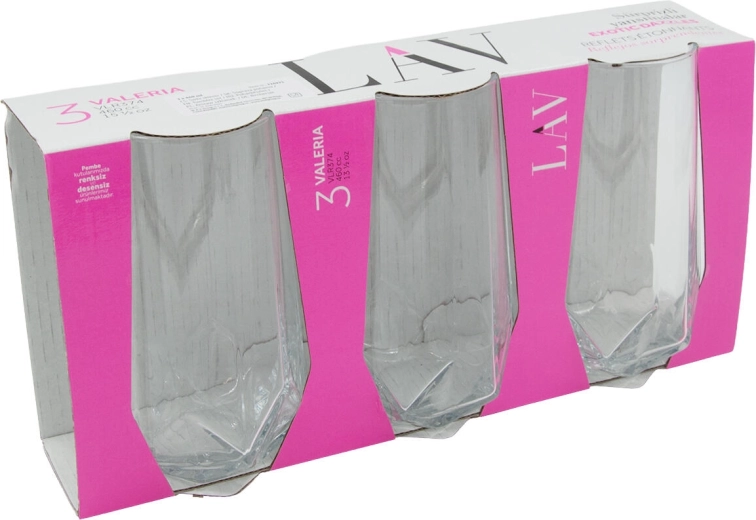 VALERIA-glas med 460 ml er perfekte til vand, lemonader, alkoholfri cocktails og mixed drinks. Det klare glas fremhæver drikkens farve, og den høje udførelse giver et elegant udtryk på ethvert bord. Den komplette pakke med 3 styk passer både til hjemmet og som en praktisk gave.