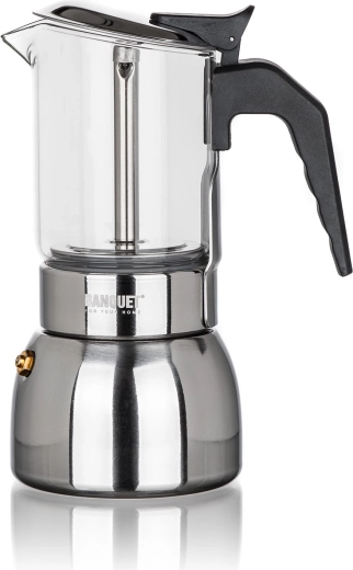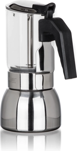 En kapacitet på 200 ml rækker til 4 små kopper intens kaffe i espresso-stil. Kanden fungerer på alle almindelige kogeplader inklusive induktion og er udstyret med en sikkerhedsventil for stabilt tryk og ubesværet brygning.
