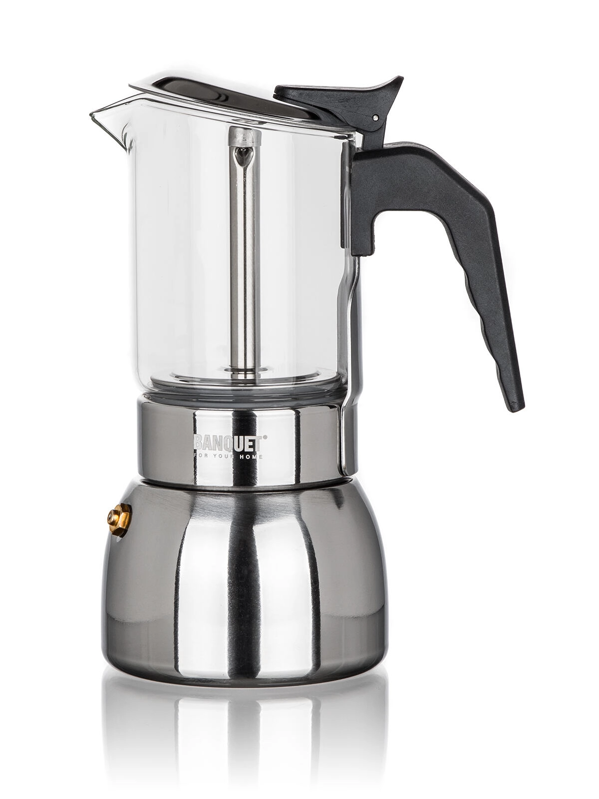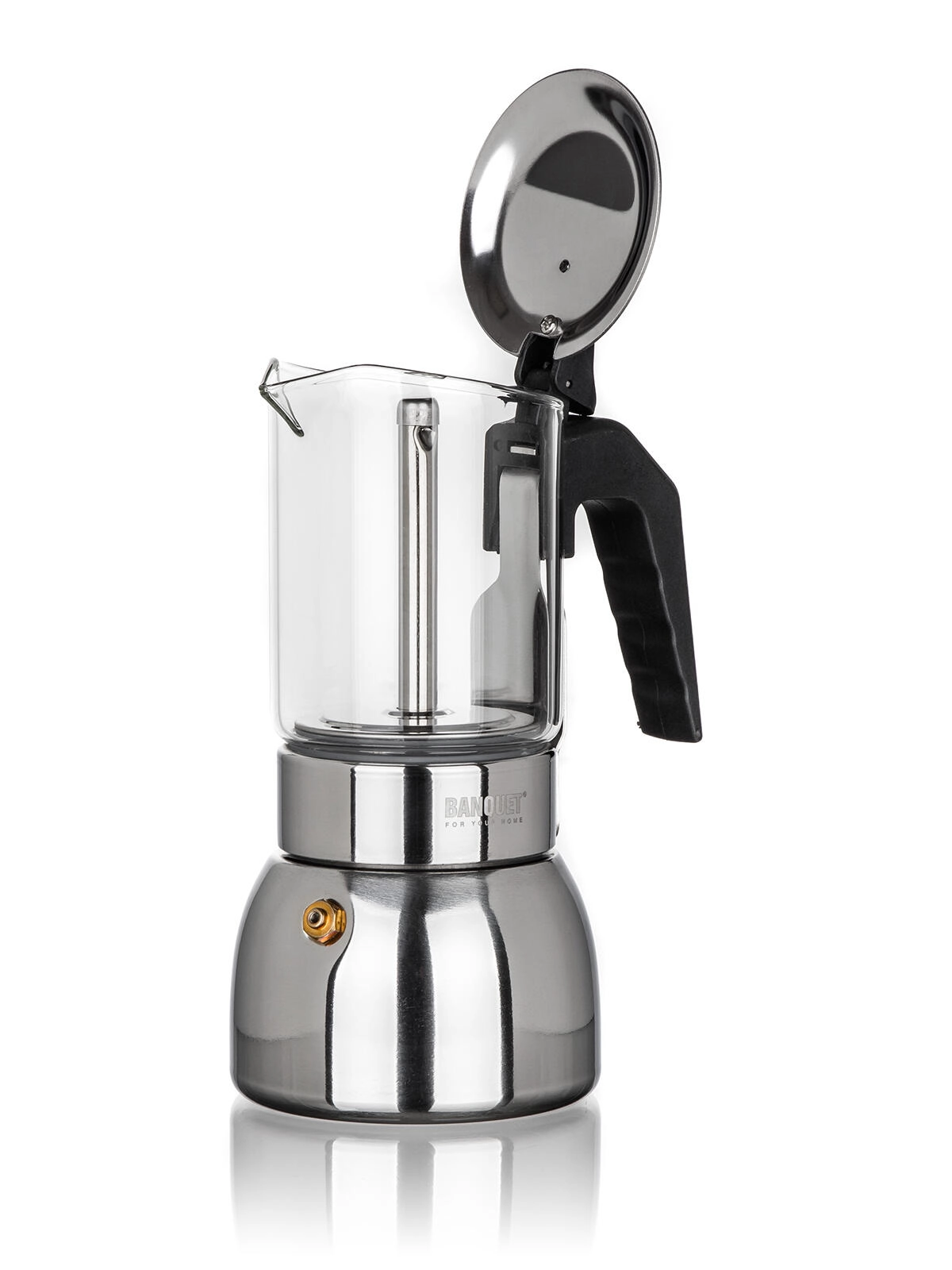 Ventilen stabiliserer trykket under brygningen, og stålkroppen sikrer jævn opvarmning og lang levetid – ideel til daglig brug.