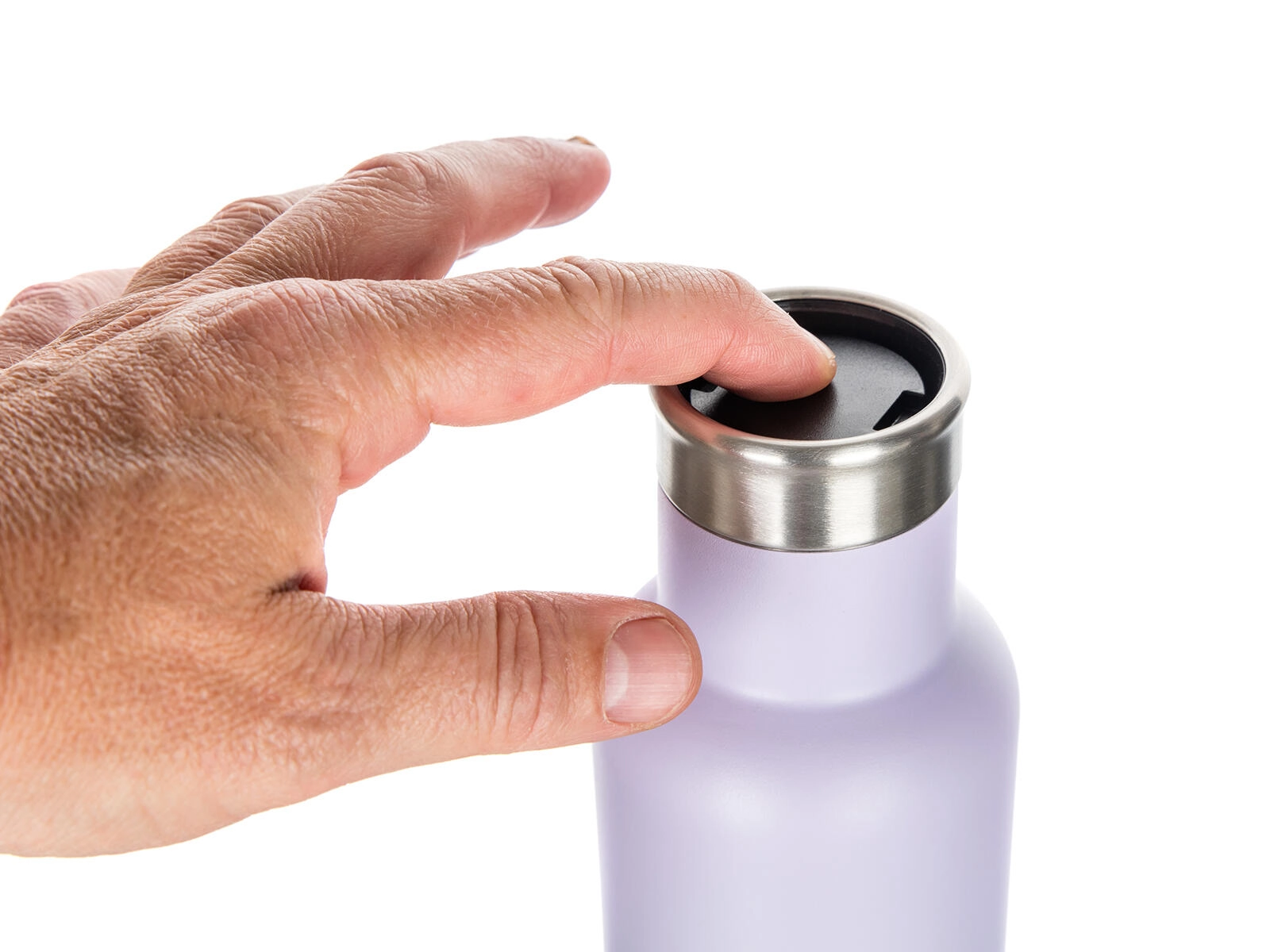 Det smarte låg med rund lås af typen termo-sikkerhedslukning gør det muligt at hælde op med ét tryk uden at fjerne låget helt – hurtigt, rent og sikkert. Vi anbefaler at opbevare i lodret position for maksimal tæthed og komfort ved brug både hjemme og på farten.