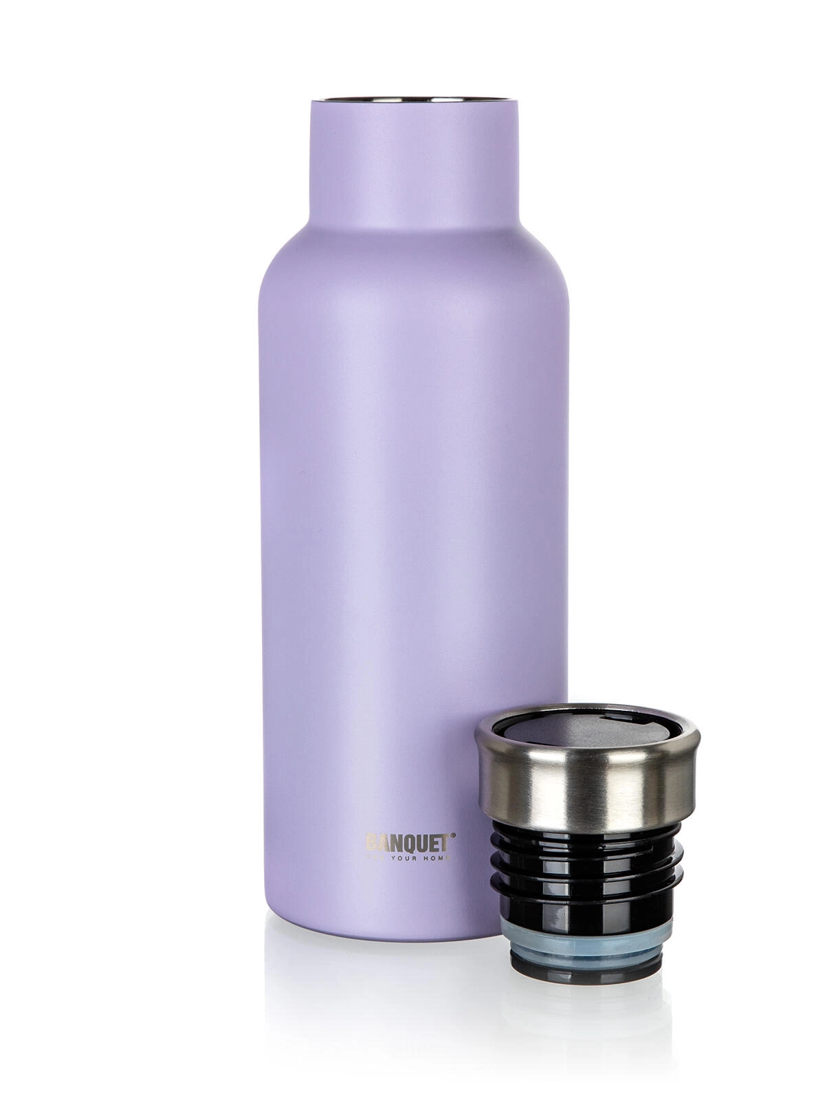 Nyd pålidelig termoisolering og moderne design. Ydersiden i rustfrit stål 201 og indersiden i højkvalitets stål 304 sammen med vakuumlegemet garanterer fremragende temperaturholdning og lang levetid. Den matte lilla overflade er behagelig at røre ved og modstandsdygtig over for fingeraftryk.