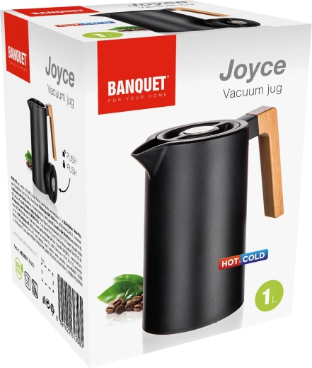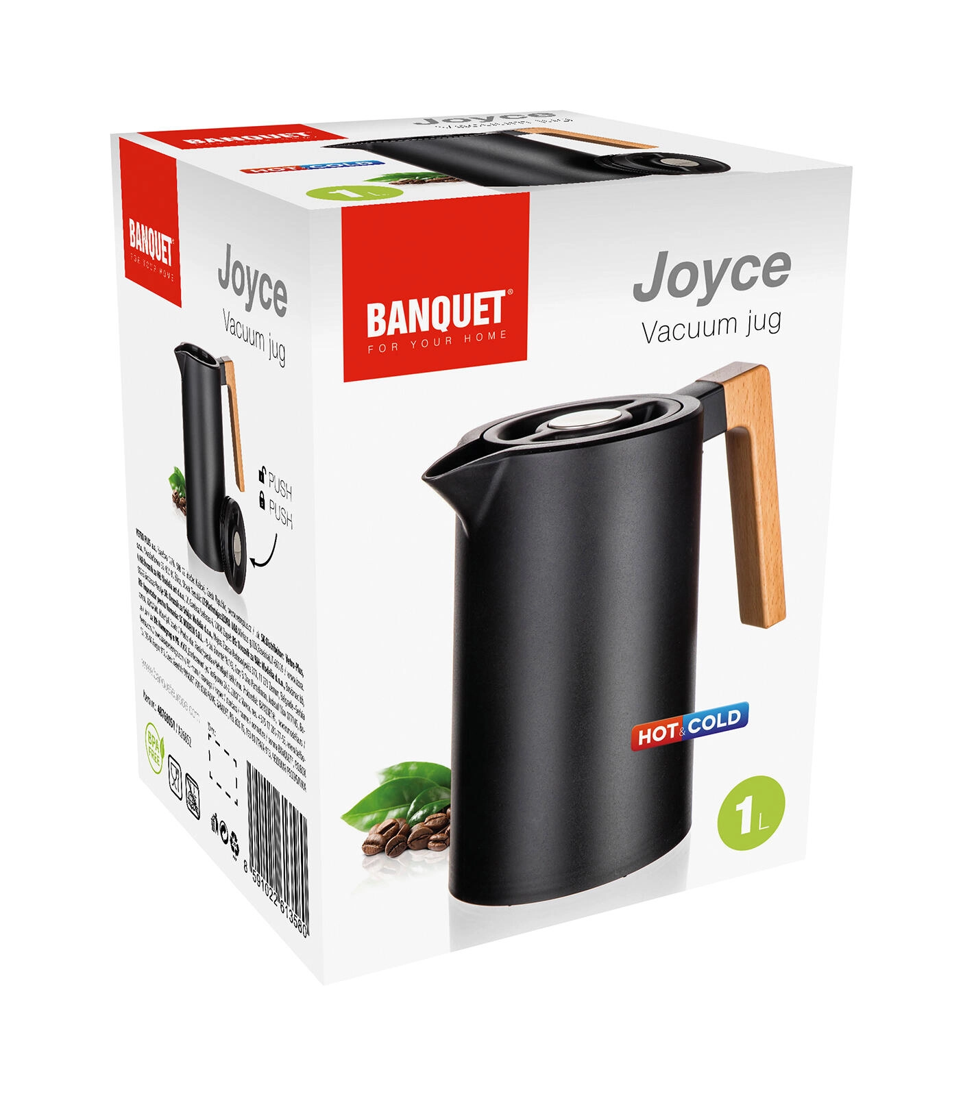 Den stilfulde termokande Joyce med en kapacitet på 1 l holder dine drikke ved den ideelle temperatur længere takket være et vakuum-isoleret korpus. Den har en indre konstruktion i rustfrit stål 304 for ren smag, en holdbar ydre kappe i rustfrit stål 201 og et praktisk tryklåg med sikkerhedslås for nem påfyldning uden at skrue låget af. Velegnet til varme og kolde drikke og perfekt til kontoret og hjemmet.