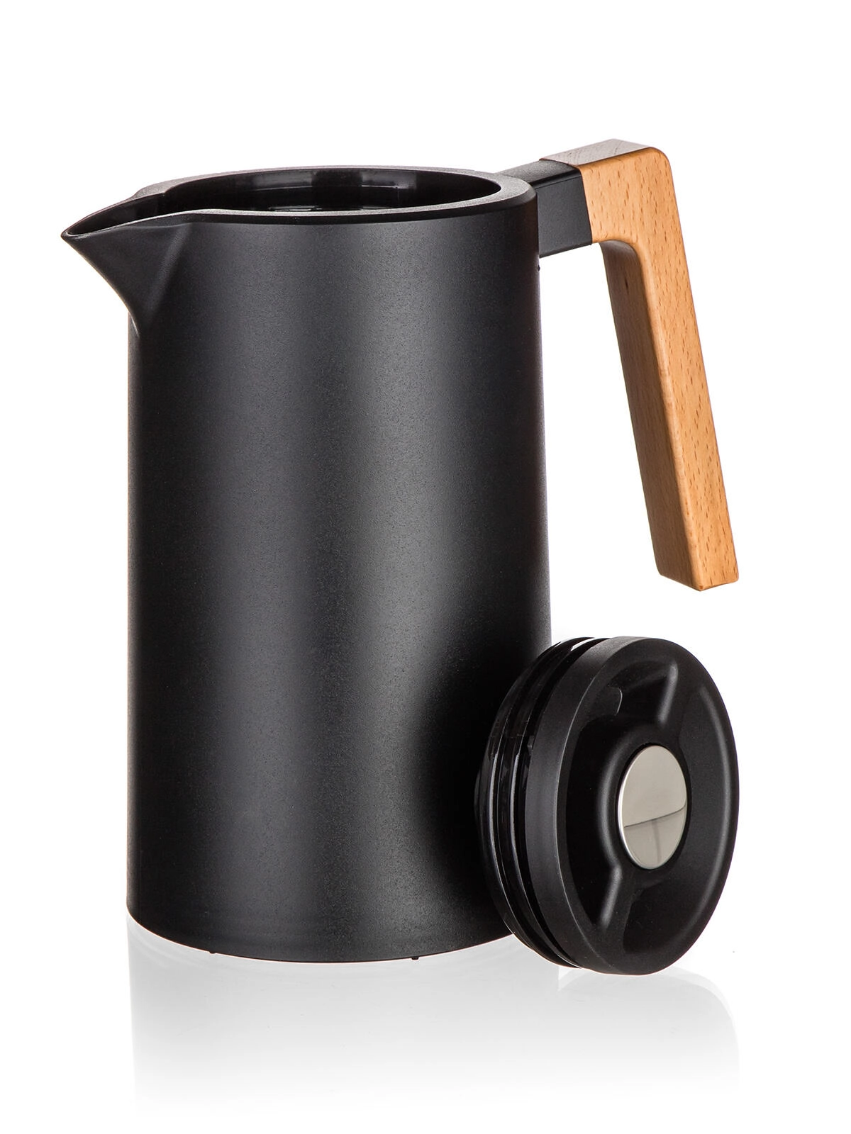 Takket være høj kvalitet i rustfrit stål 304 indvendigt bevarer drikke deres smag og aroma. Ydre rustfrit stål 201 med en slidstærk plastkappe (PP) er praktisk til vedligeholdelse og daglig brug. Ideel til kaffe, te, vand og hjemmelavede lemonader.
