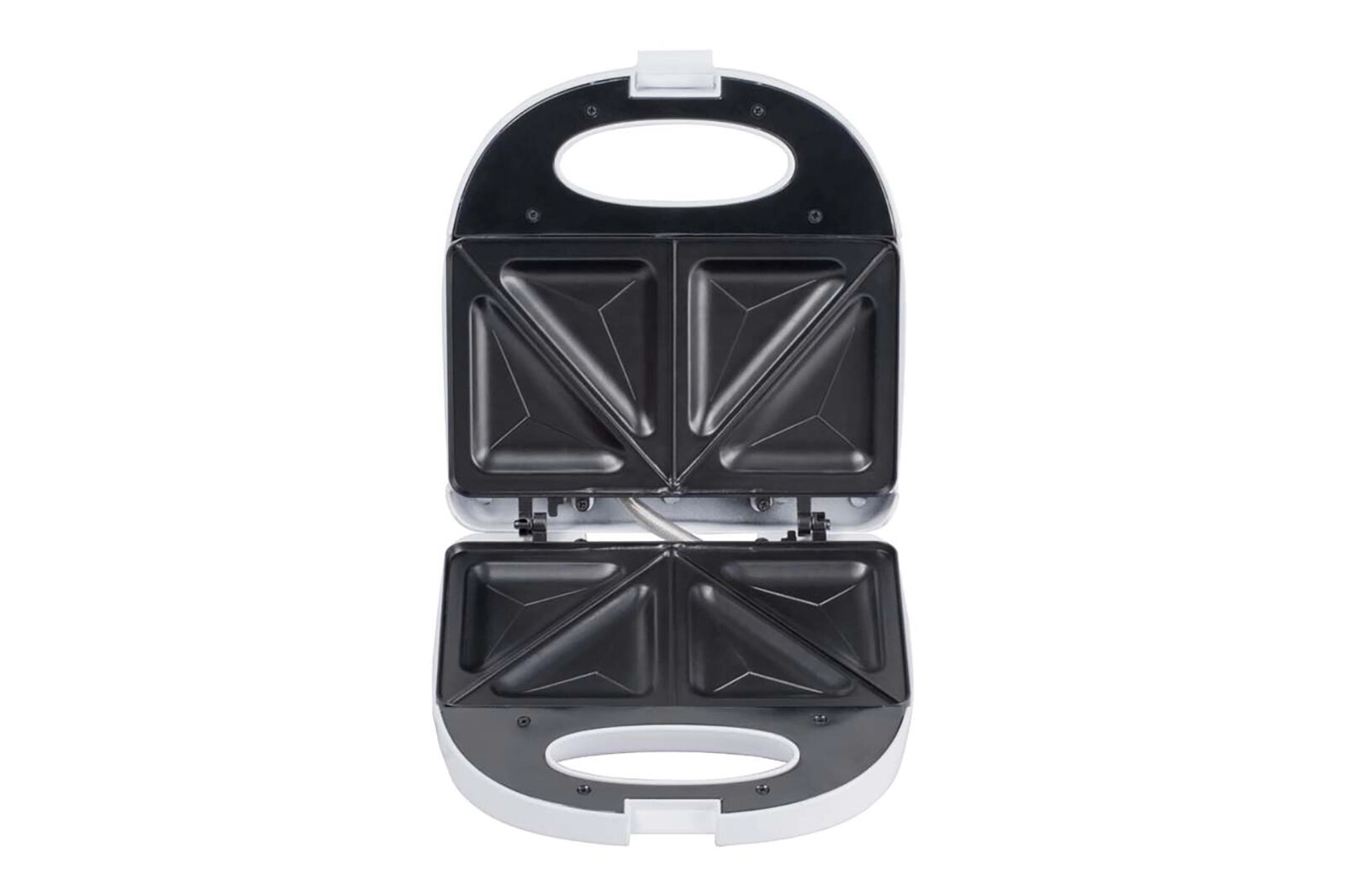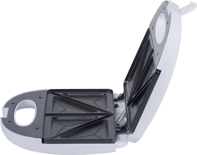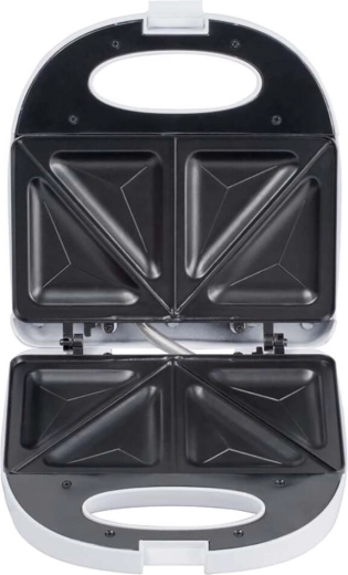Nyd hurtige og velsmagende sandwiches når som helst på dagen. Denne kompakte og kraftfulde sandwichmaker med en effekt på 750 W tilbereder to sandwiches samtidigt og deler dem i praktiske trekanter takket være de formede plader. Non-stick belægningen forhindrer fastbrænding og gør det let at rengøre efter hver brug.