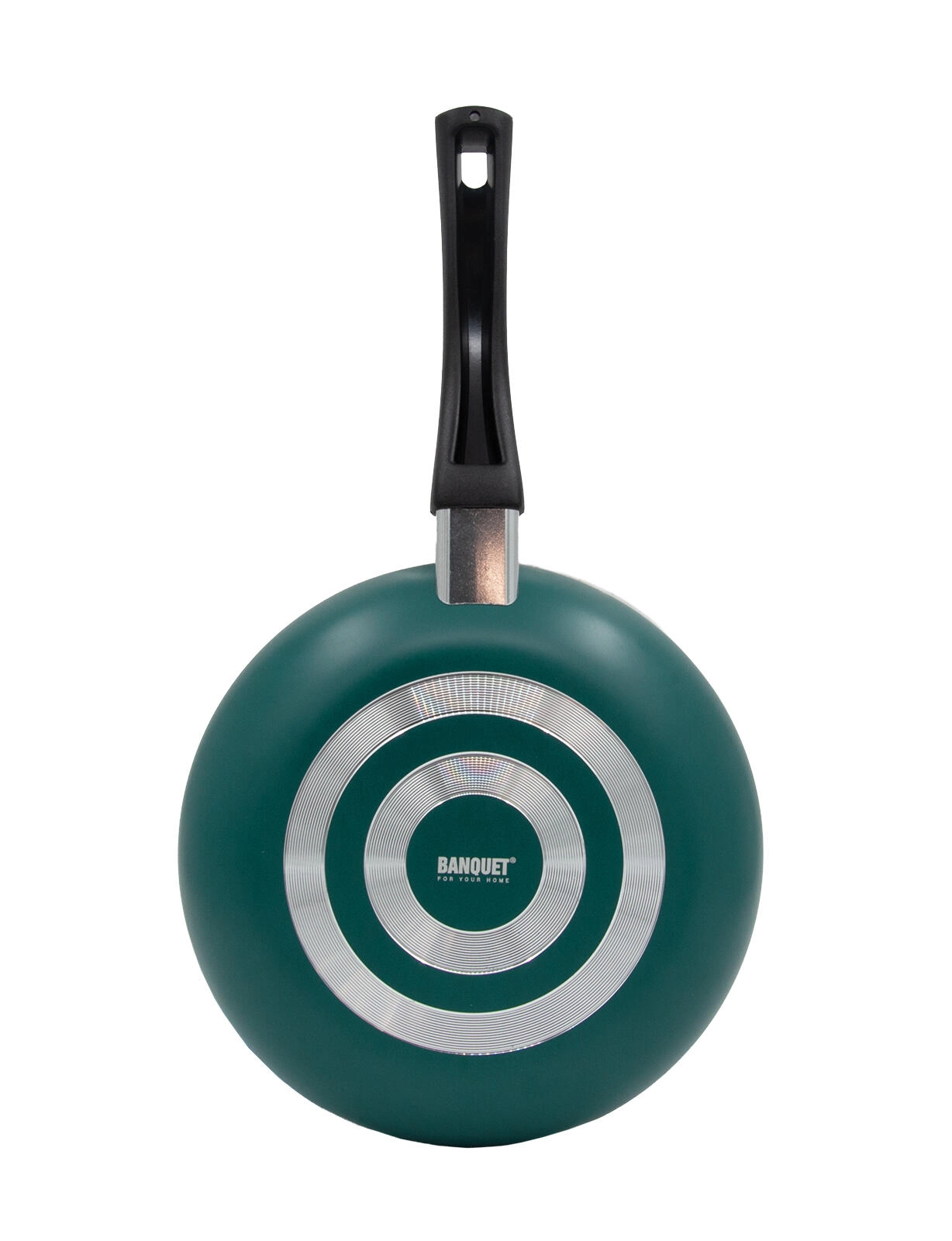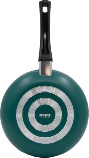 Det indre i elegant sort fuldendes af en mat turkis yderside og et sort bakelithåndtag, som giver et sikkert greb og nem håndtering. Panden er let at vedligeholde og egner sig til alle typer kogeplader undtagen induktion.