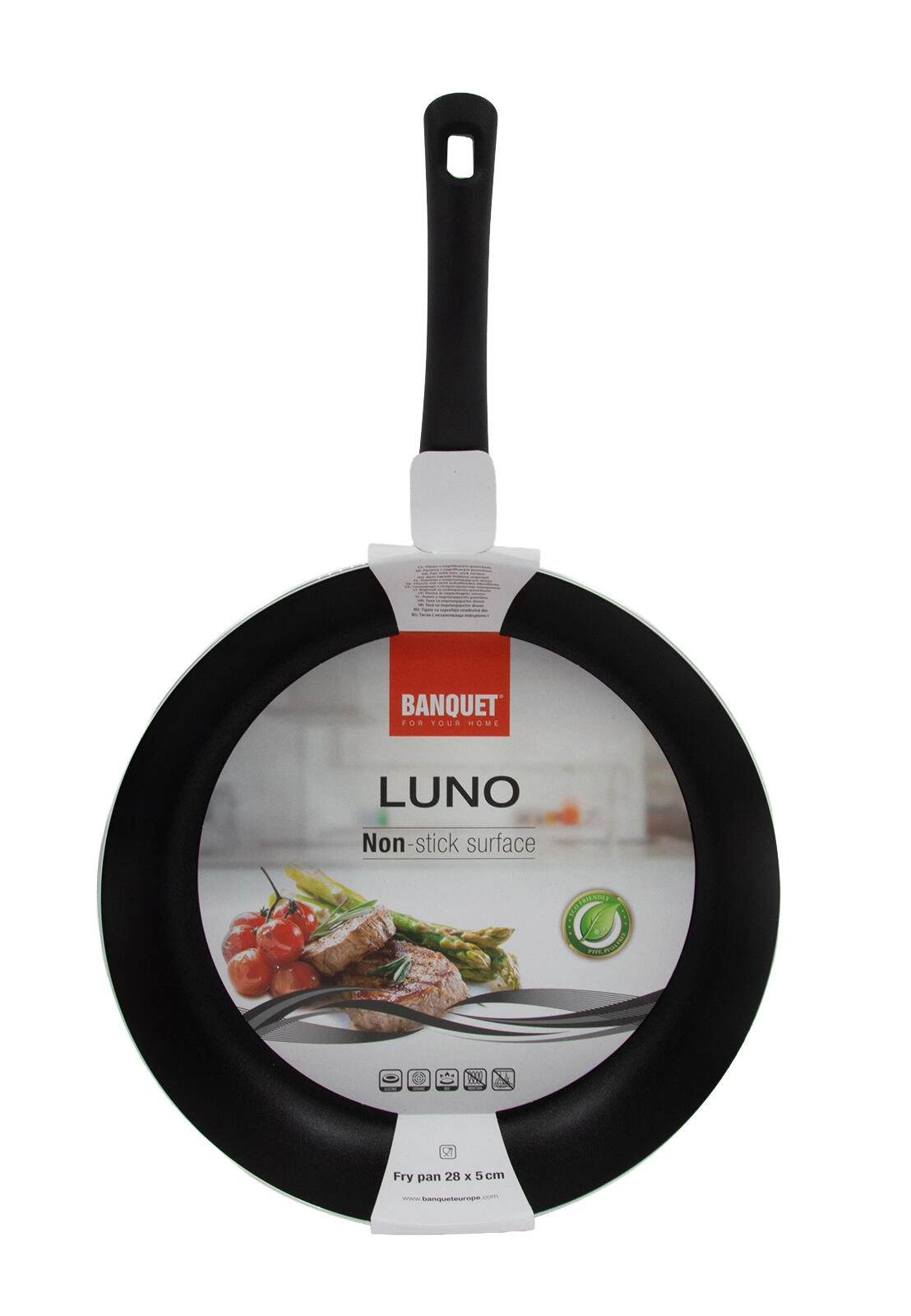 Luno-panden på 28 cm er fremstillet af presset aluminium for hurtig og jævn opvarmning. Den indvendige sorte nonstick-overflade med dobbelt lag minimerer fastbrænding og gør det muligt at lave mad med mindre olie. Takket være det behagelige ergonomiske håndtag i bakeleit ligger panden godt i hånden og er let at styre.