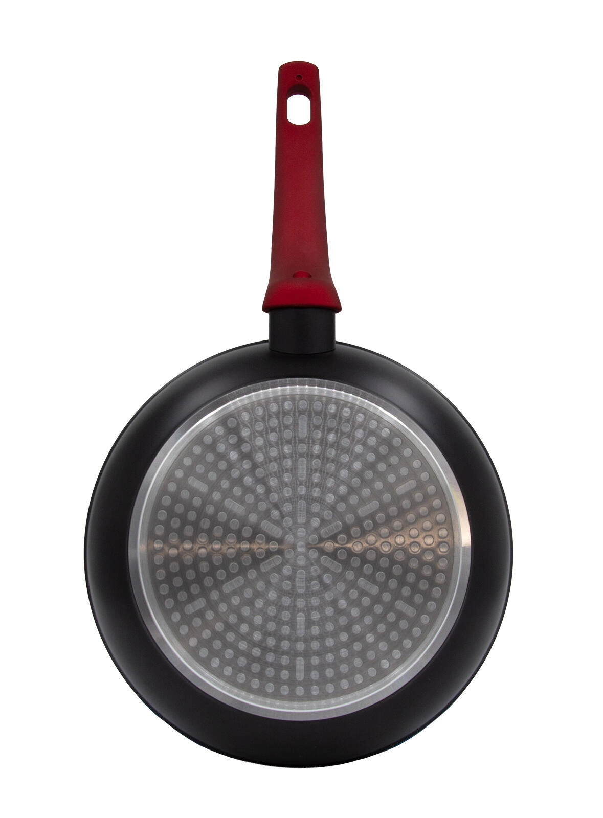 Konstruktionen i støbt aluminium sikrer slag- og formstabil modstandsdygtighed. Det ergonomiske soft-touch-håndtag ligger godt i hånden og giver et sikkert greb. Panden er kompatibel med alle typer kogeplader, inklusive induktion.