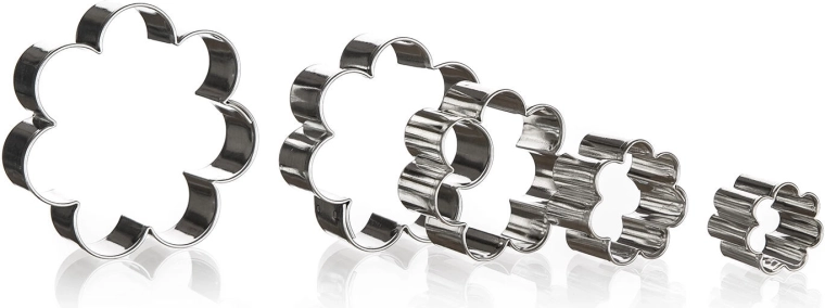 Opdag et alsidigt sæt blomsterudstikkere, der er perfekt til småkager, honningkager, kiks og kagedekoration. Med fem forskellige størrelser skaber du perfekt afstemte sæt fra mini til større motiver. Det holdbare fortinnede blik sikrer rene snit og nem vedligeholdelse.