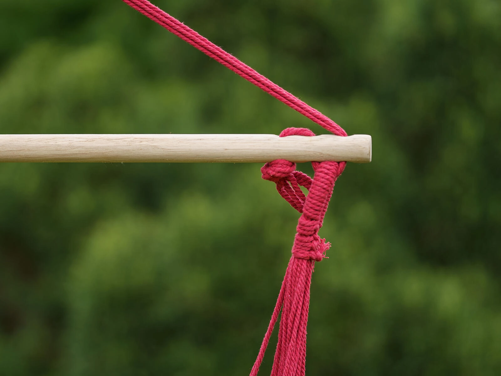 Nem montering i loftkrog eller på stativ. Det stærke ophængsreb og sikre knuder giver tryghed, når du gynger.