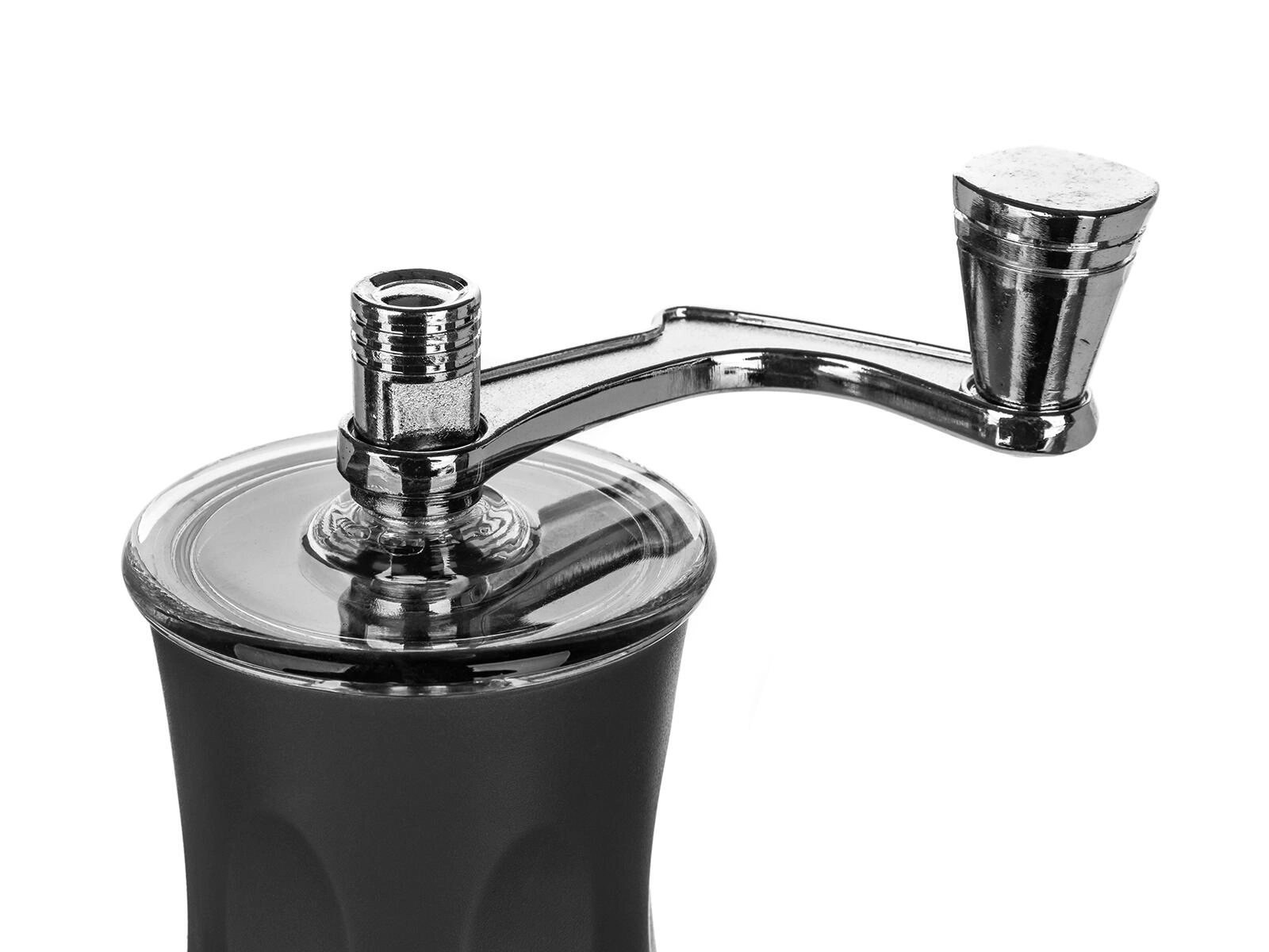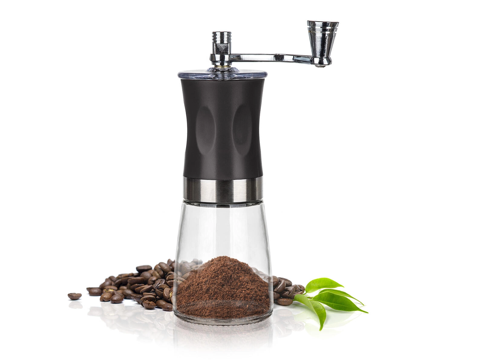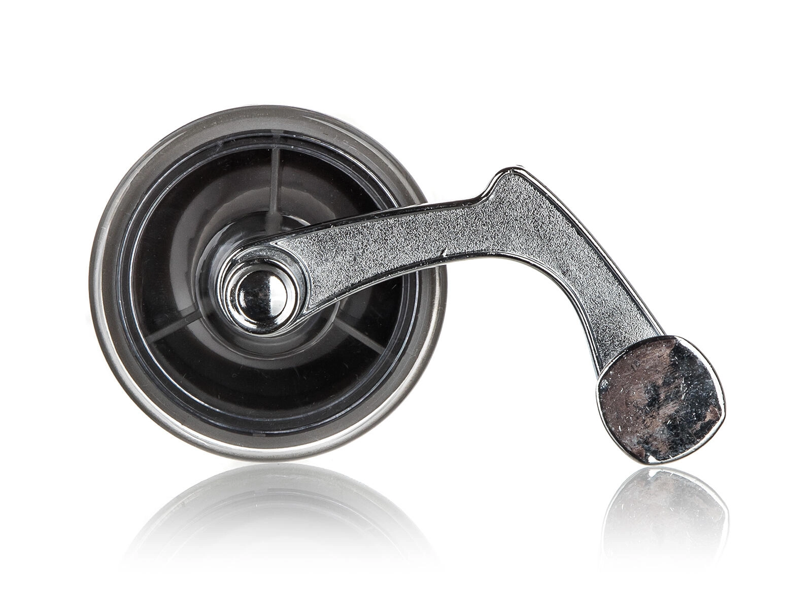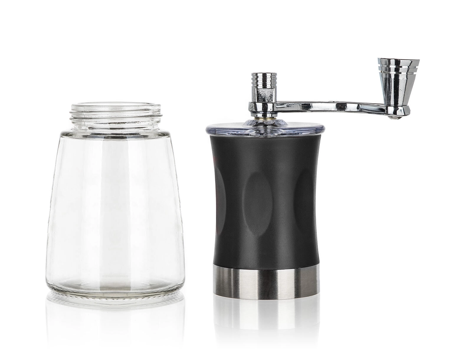 Den gennemsigtige beholder gør det let at holde øje med mængden af kværnet kaffe, mens det komfortable håndsving sikrer jævn manuel kværning.