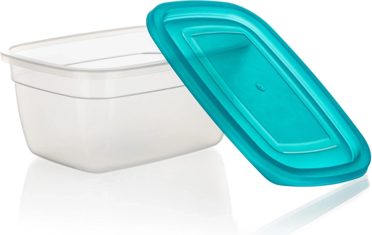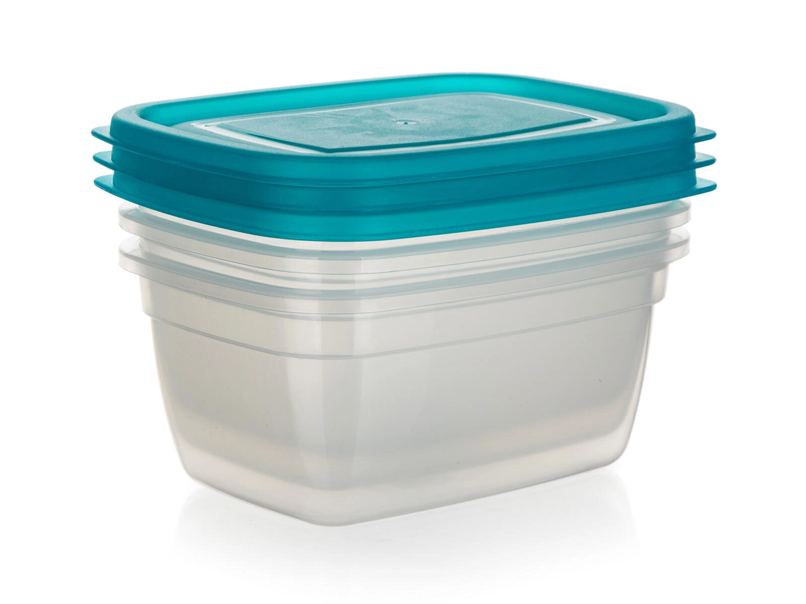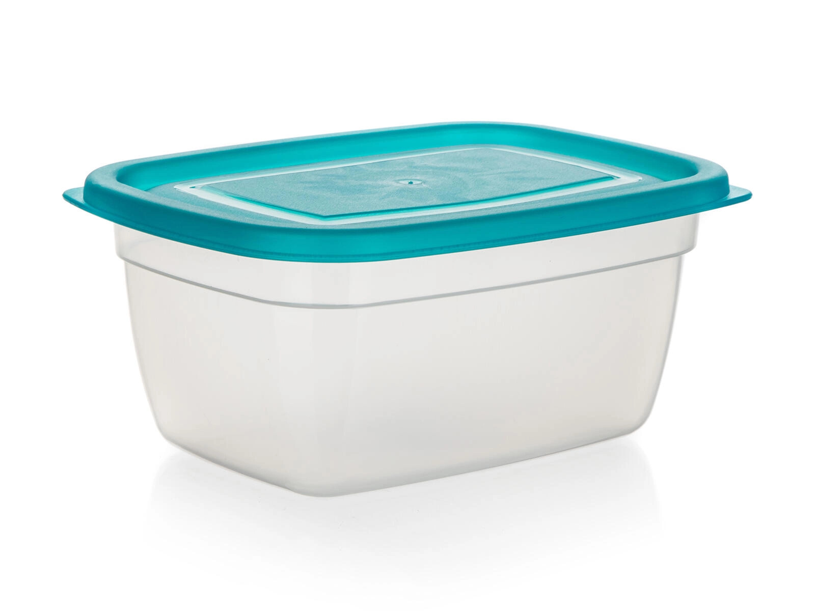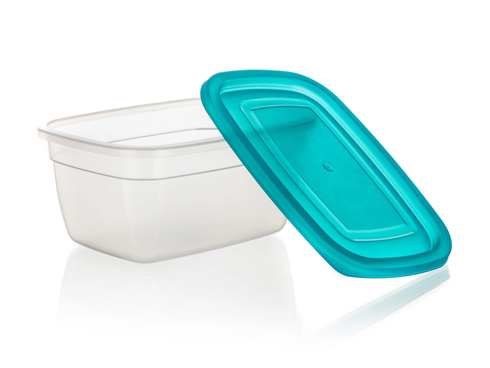 Hold orden i køleskab og spisekammer med dette alsidige sæt plastbeholdere på 0,95 l. Den robuste, lette og gennemsigtige konstruktion gør det let at identificere indholdet, mens turkise kliklåg hjælper med at begrænse lugtudslip og holde maden frisk længere.