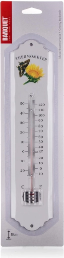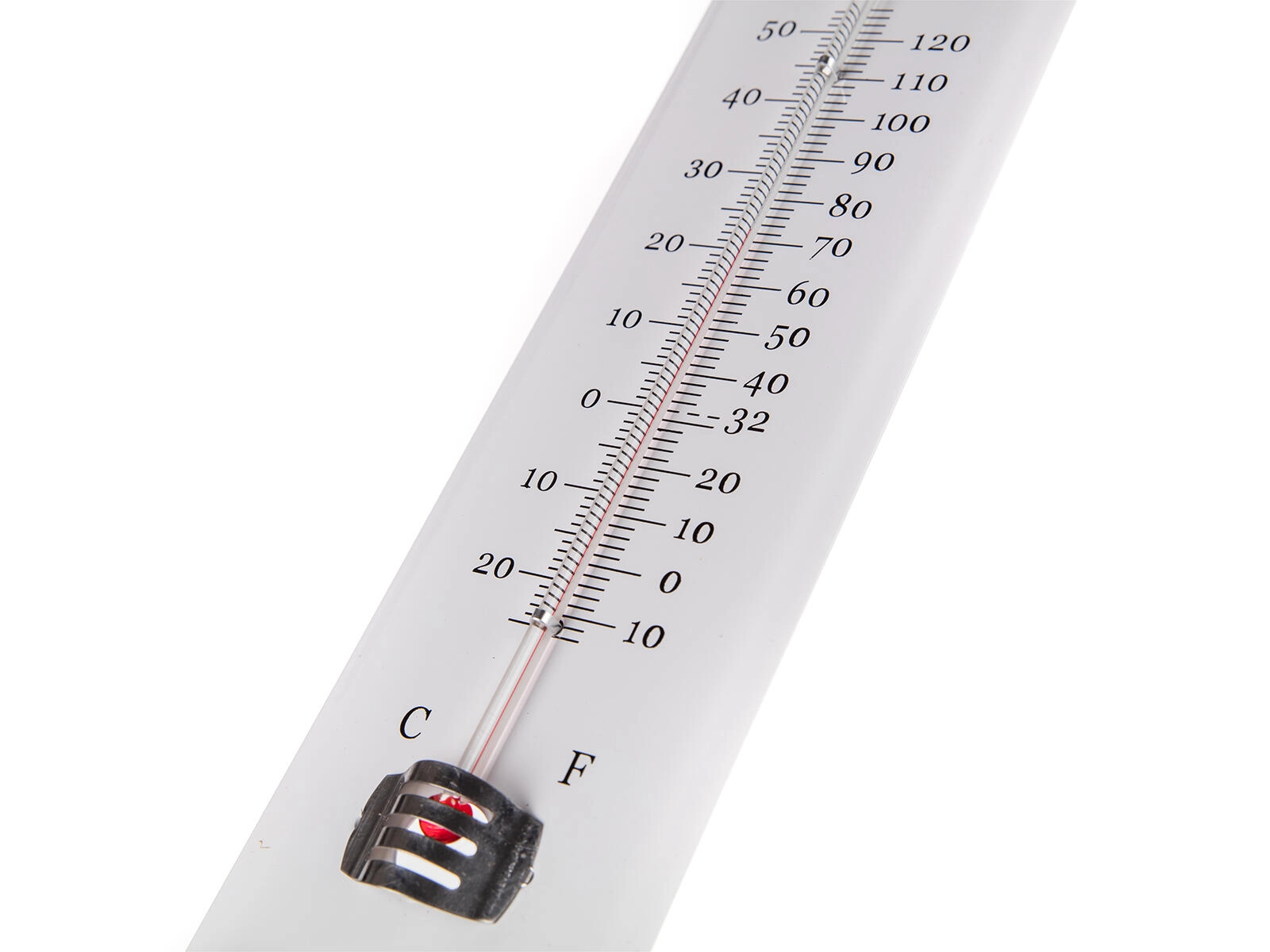 Termometeret er udstyret med en glaskapillar med rød væske for tydelige aflæsninger, kontrasttryk og et øje til ophæng på væggen. Passer til hjemmet, altanen, terrassen, værkstedet eller drivhuset.