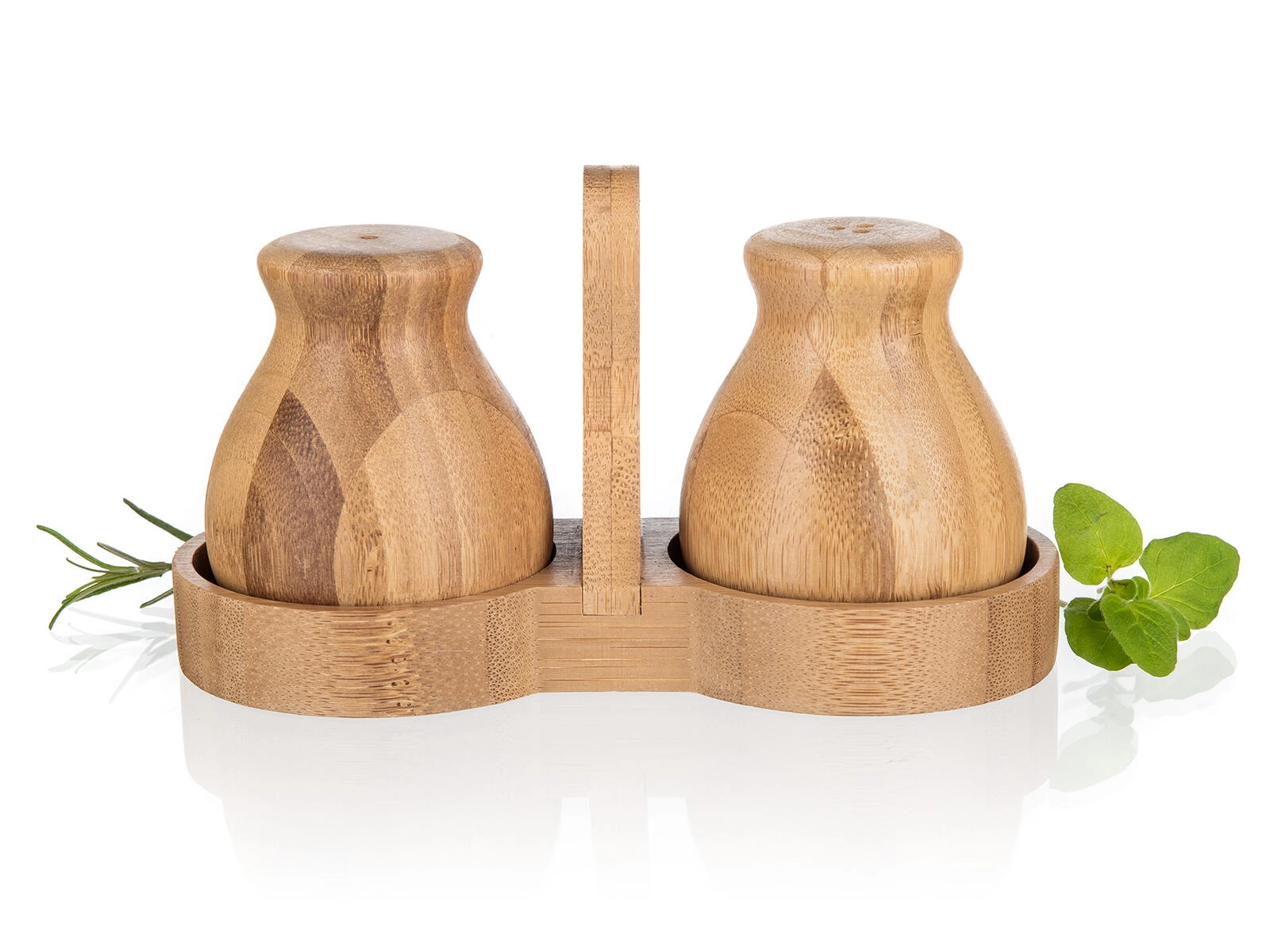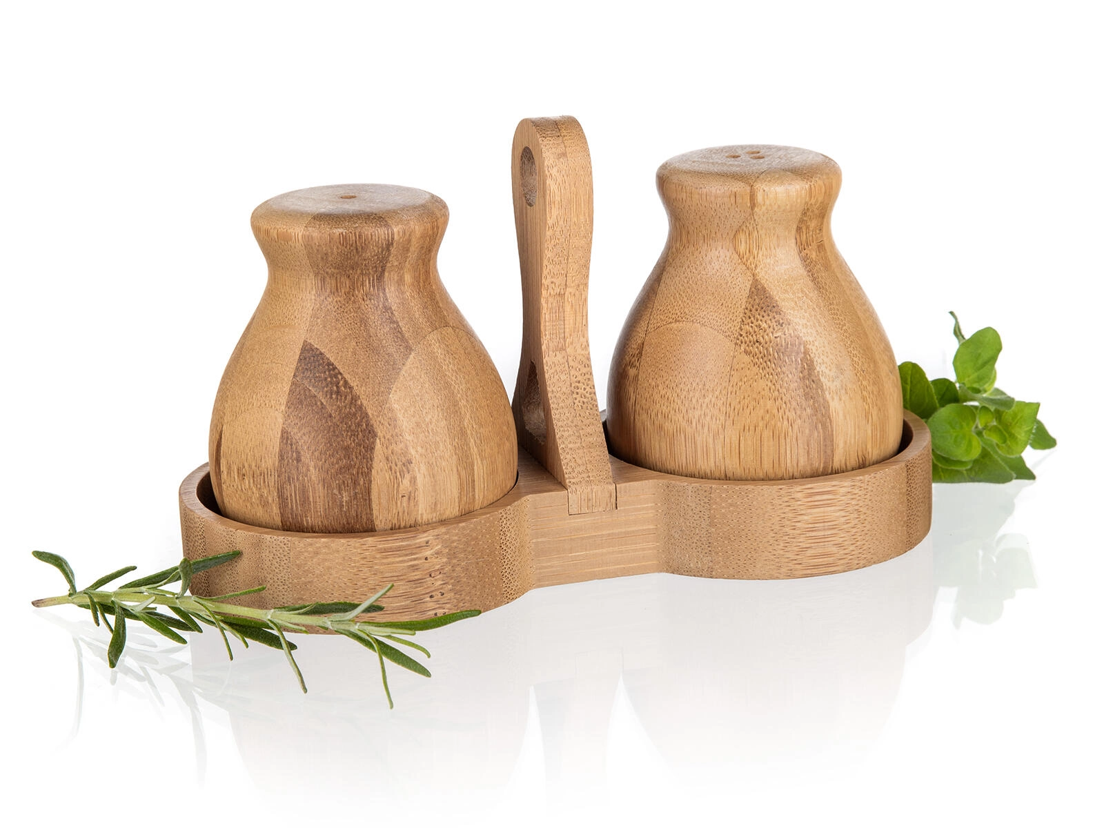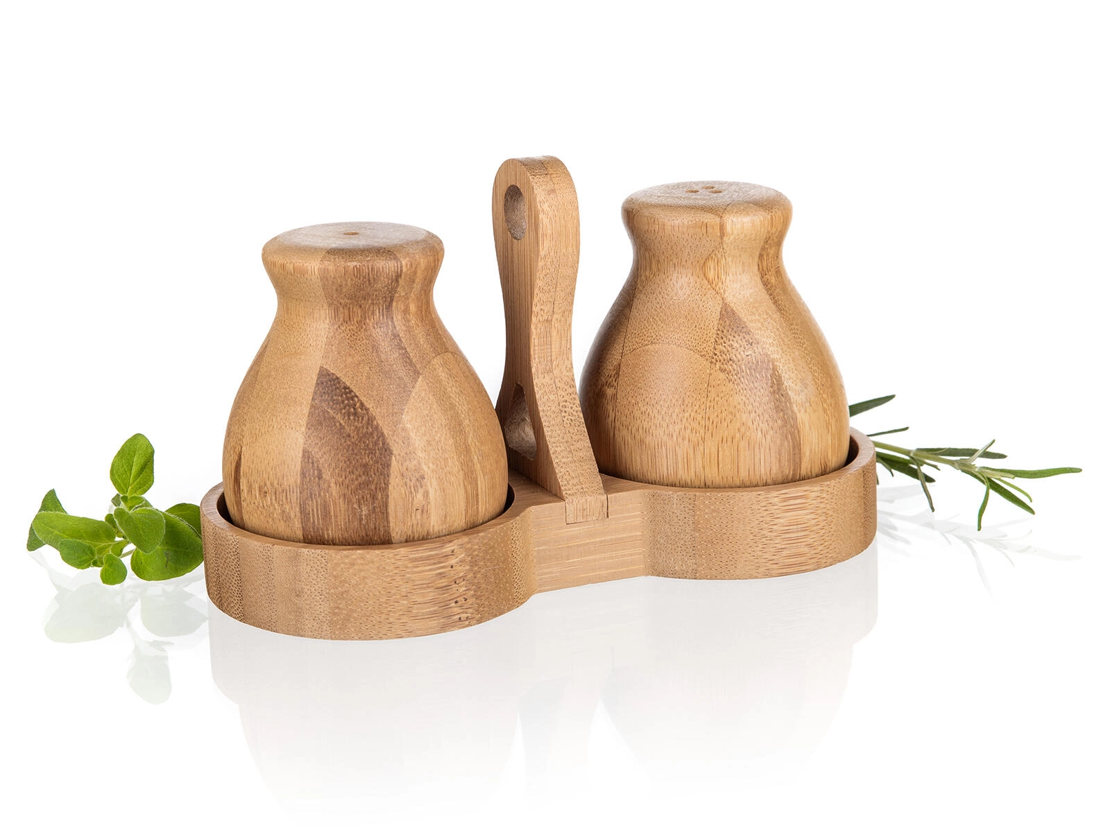 Denne bambus salt- og peberbøsse BRILLANTE Bamboo forener æstetik og funktionalitet. Det naturlige materiale med fint slebet overflade føles varmt og indbydende, mens den kompakte holder med centralt håndtag sikrer stabil opbevaring og nem flytning på bordet.