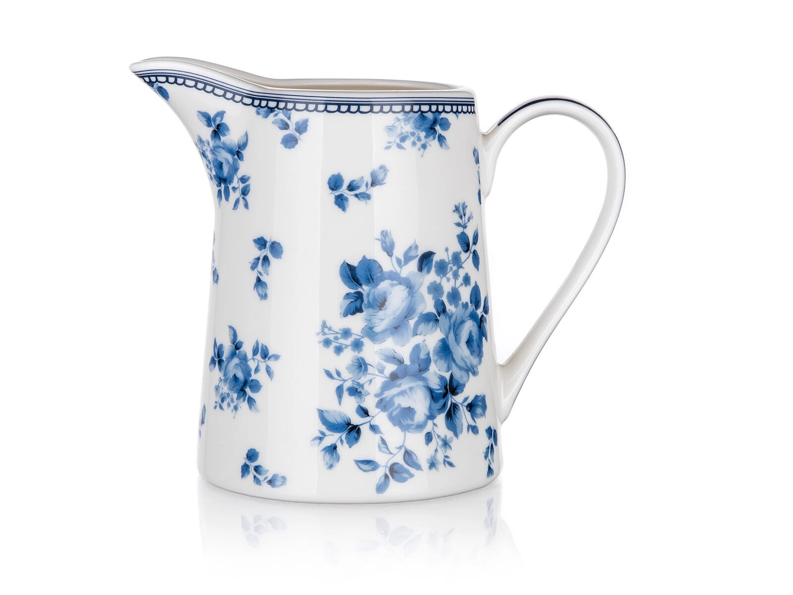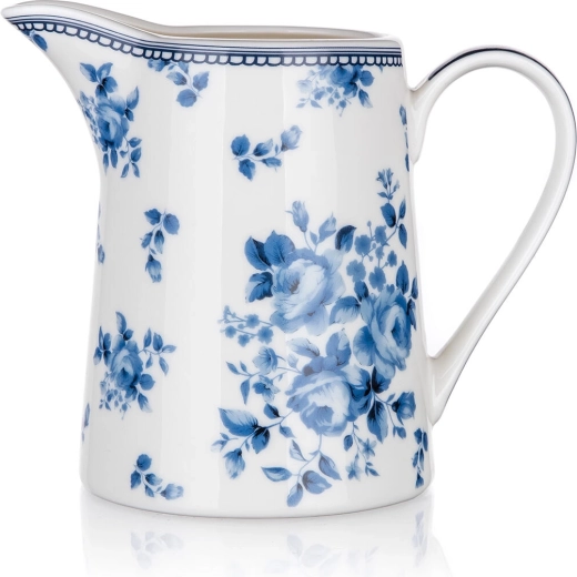 Denne stilfulde mælkekande i kvalitetskeramik tilfører dit bord et strejf af elegance. Den tidløse blå-hvide blomstermotiv tager sig smukt ud i både moderne og klassiske køkkener, og takket være det ergonomiske håndtag og den praktiske tud er hældningen behagelig og præcis.
