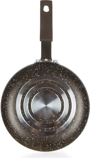 Ydersiden er beskyttet af en 2-lags varmebestandig spray i mørkebrun marmoreffekt, som er både robust og æstetisk. Den lave profil på 3 cm og de kompakte mål gør panden ideel til mindre køkkener, sommerhus eller som supplement til dit udstyr til hurtig madlavning.