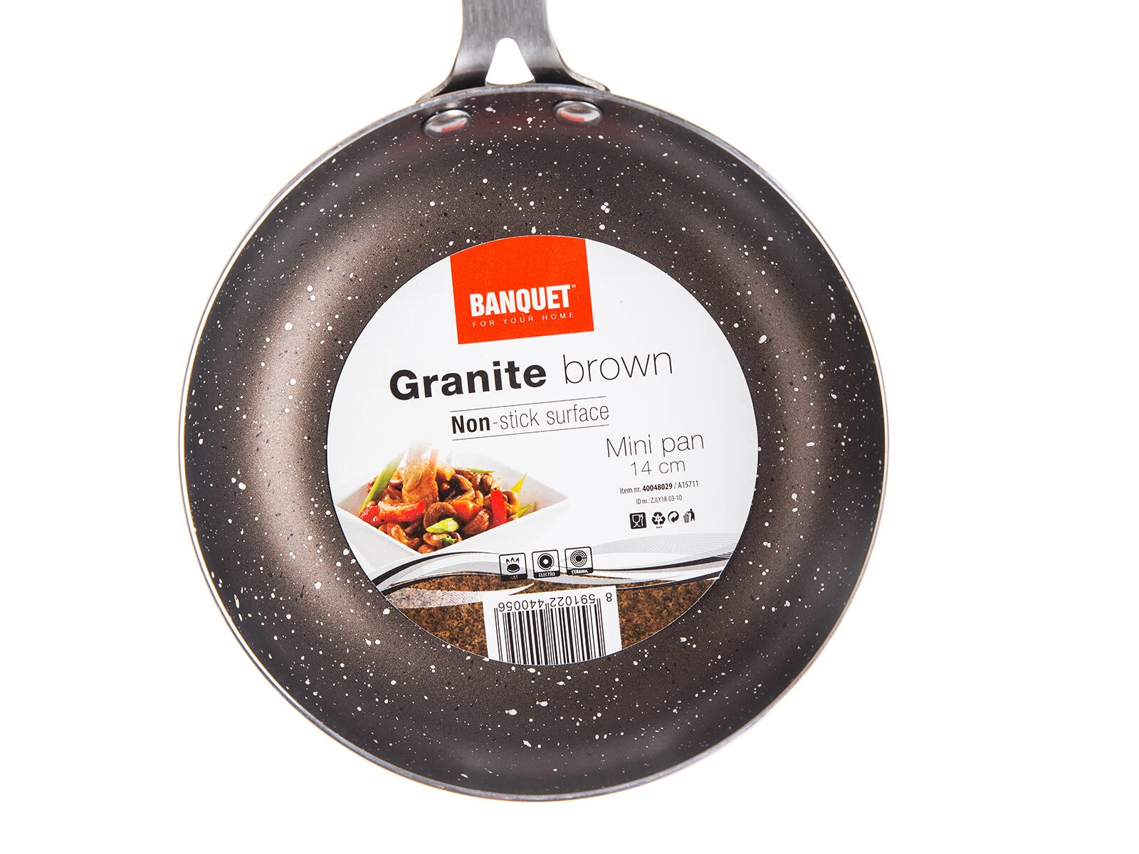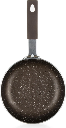 Oplev den praktiske mini pande Granite Brown med en diameter på 14 cm, perfekt til hurtige morgenmåltider og små portioner i løbet af dagen. Takket være den 2-lags nonstick-belægning i marmorlook brænder maden ikke fast, og rengøring går på et øjeblik. Aluminiumskonstruktionen sikrer jævn opvarmning over hele fladen.