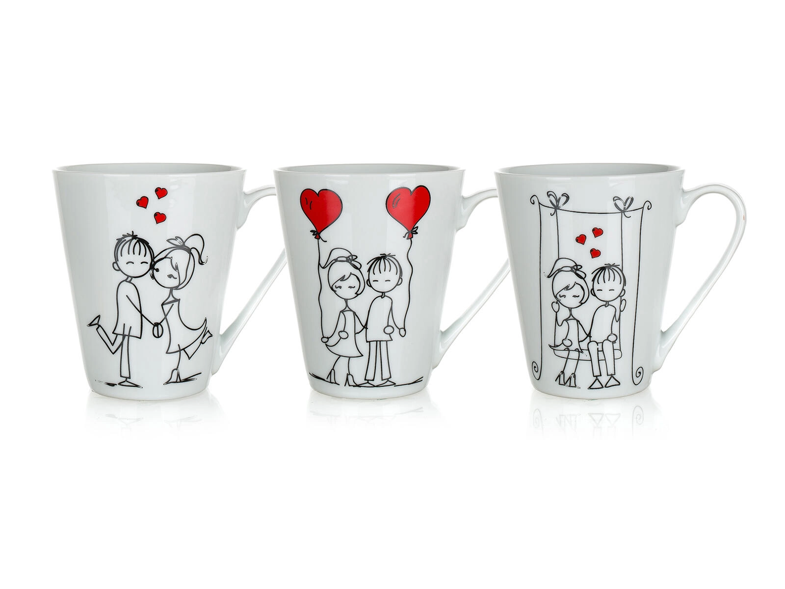 Fine illustrationer af et forelsket par og små hjerter giver din morgen en positiv stemning. Mixet af dekorationer gør det muligt at vælge den stil, der passer dig bedst.