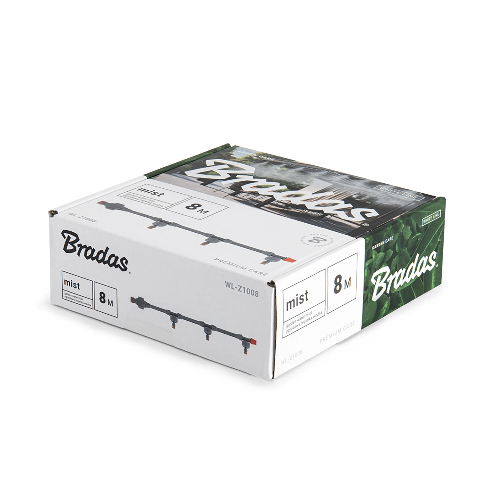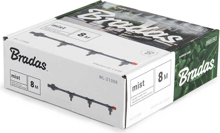 Det komplette mistsæt WHITE LINE giver hurtig og effektiv afkøling af udendørsarealer. Installationen er enkel – tilslut blot forbindelsesadapteren med filter til vandtilførslen og før den 8 m lange slange med messingdyser langs pergola, lysthus eller havekonstruktioner. Den fine tåge forbedrer markant mikroklimaet på terrassen og i drivhuset.