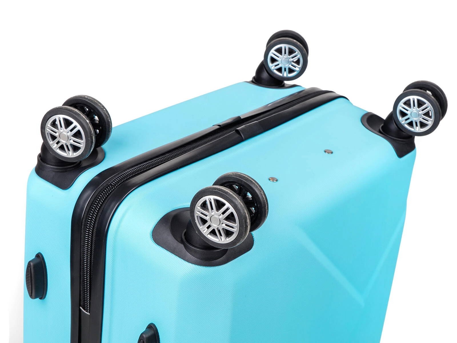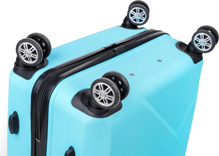 Fire dobbelte drejehjul sikrer jævn og stabil bevægelse i alle retninger, så du nemt kan føre kufferten ved siden af dig eller foran dig.