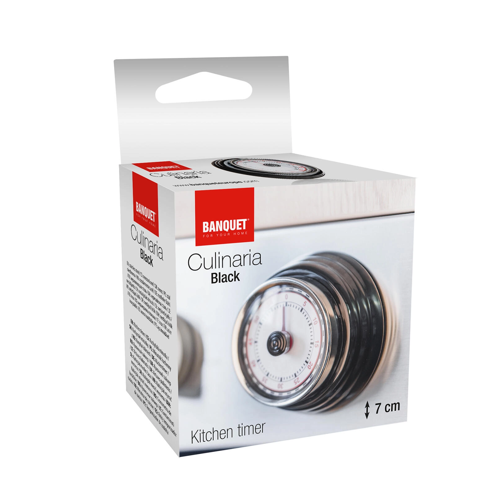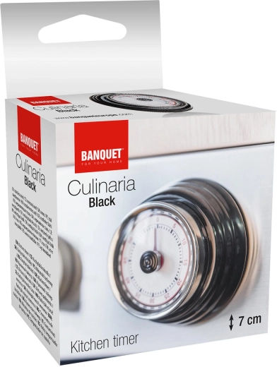 Opdag det pålidelige, mekaniske minutur CULINARIA, som imponerer med elegant sort farve, kromring og en letlæselig urskive med tydelige minutmarkeringer. Indstillingen sker hurtigt ved at dreje det centrale håndtag, og når tiden er gået, lyder et kraftigt lydsignal.